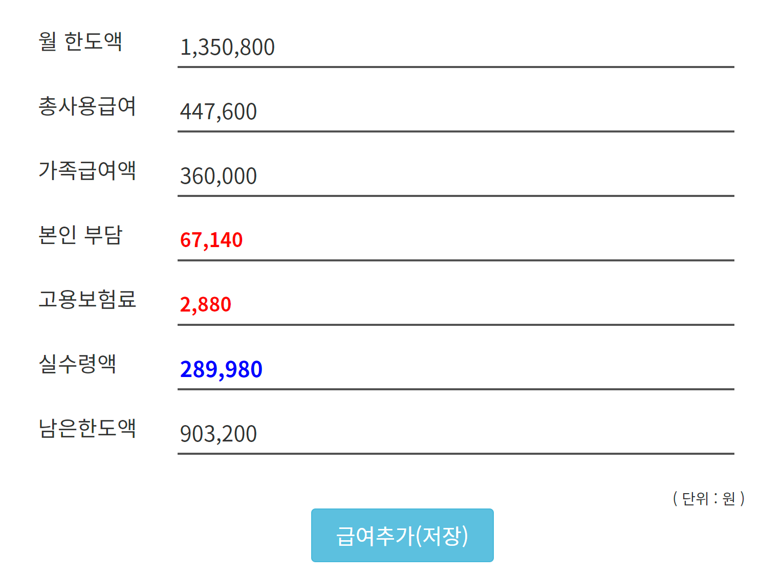 모의계산기이므로 직접 1회 임금 및 설정값 변경을 통해 자신의 임금을 계산해 볼 수 있다.