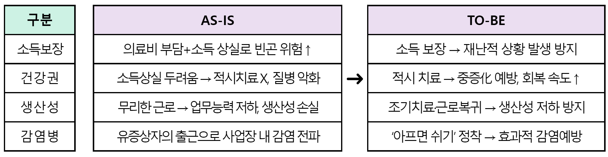 상병수당은 2022년 7월부터 1·2·3단계로 시행되는 시범 운영 사업으로 업무와 상관없이 질병이나 부상으로 일을 못하면 그 기간동안 소득을 지원하는 제도이다.
