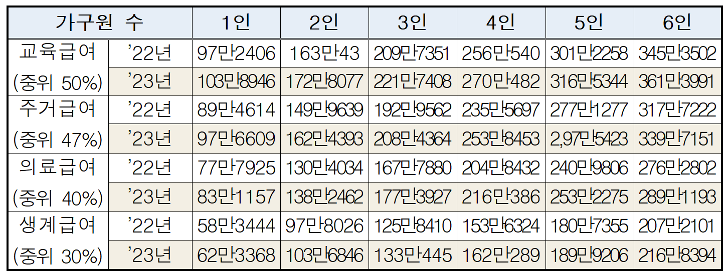 2023년도 기준 중위소득은 2015년 이후 가장 큰 폭의 인상률이다.