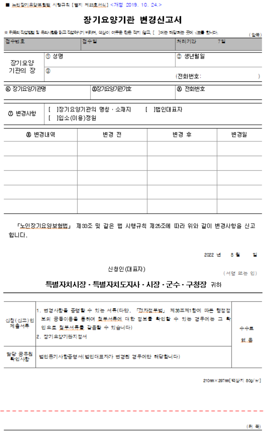 [별지 제23호서식] 장기요양기관 변경신고서(노인장기요양보험법 시행규칙).hwp