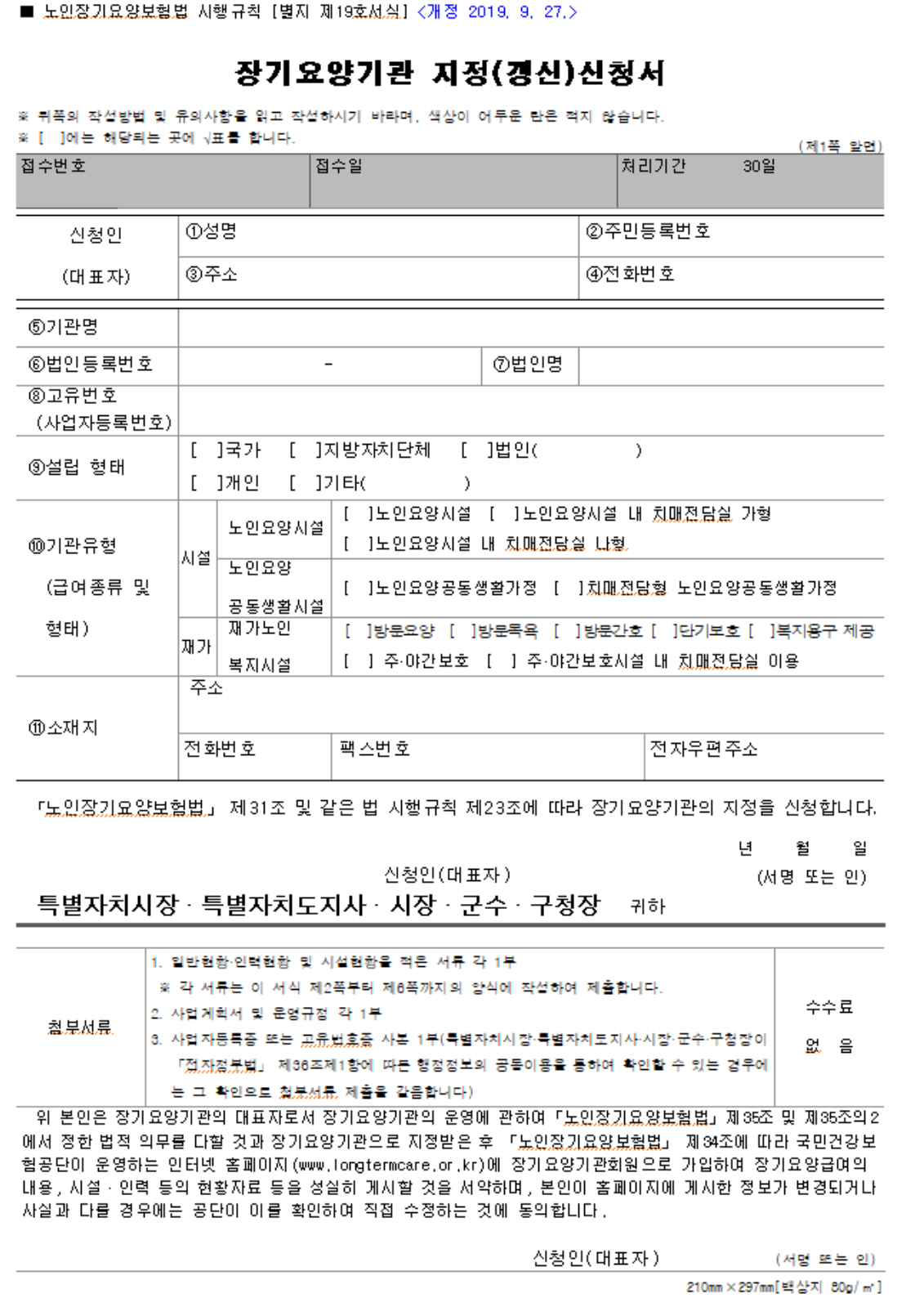 장기요양기관 지정신청서(노인장기요양보험법 시행규칙)[별지 제19호서식].hwp