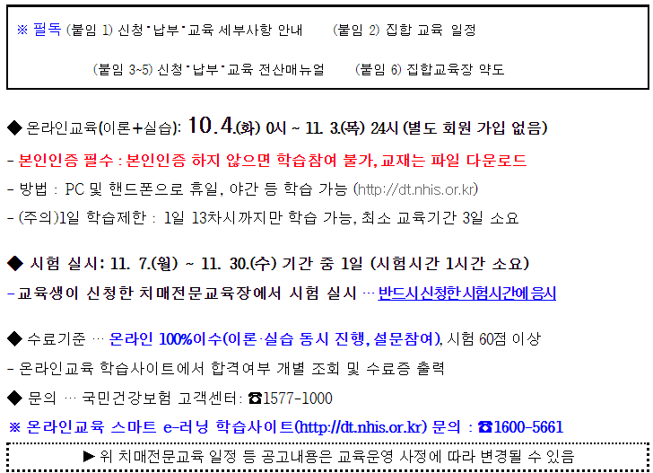 올해 총 7차수 중 마지막 차수 교육인 7차수 치매전문교육 일정 공고입니다. 아래의 공고 내용과 첨부파일을 확인하세요~교육 ..