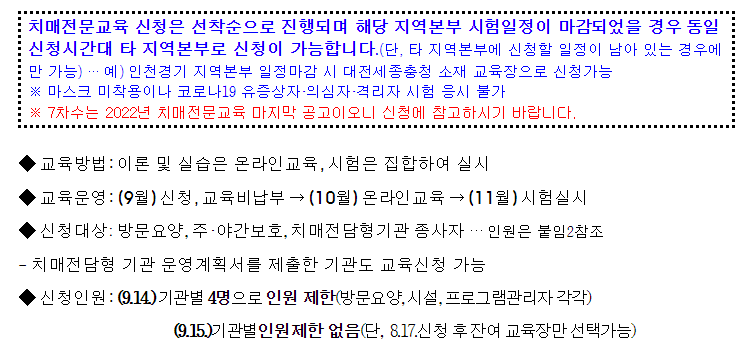 2022년 9월(7차수) 치매전문교육 신청 공고 및 세부사항