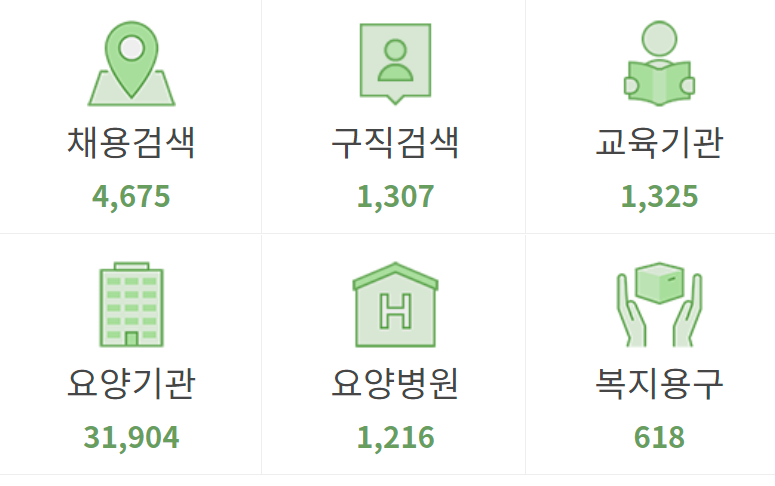 엔젤시터에서는 요양보호사 구인구직, 요양보호사 교육원 정보, 요양기관 검색 서비스를 제공하고 있다. 또한 복지용구도 쉽게 검색 할 수 있는 페이지를 제공하고 있다.