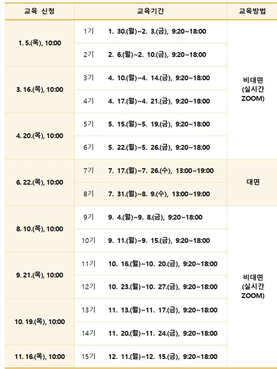 2023년 한국복지대학교 평생교육원 활동지원사 양성교육 연간일정표