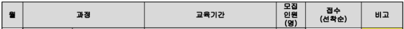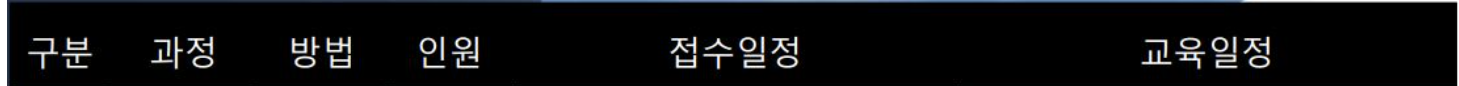 | 기수 | 과정 | 교육기간 | 접수일시 | 모집인원 | 강의실 |