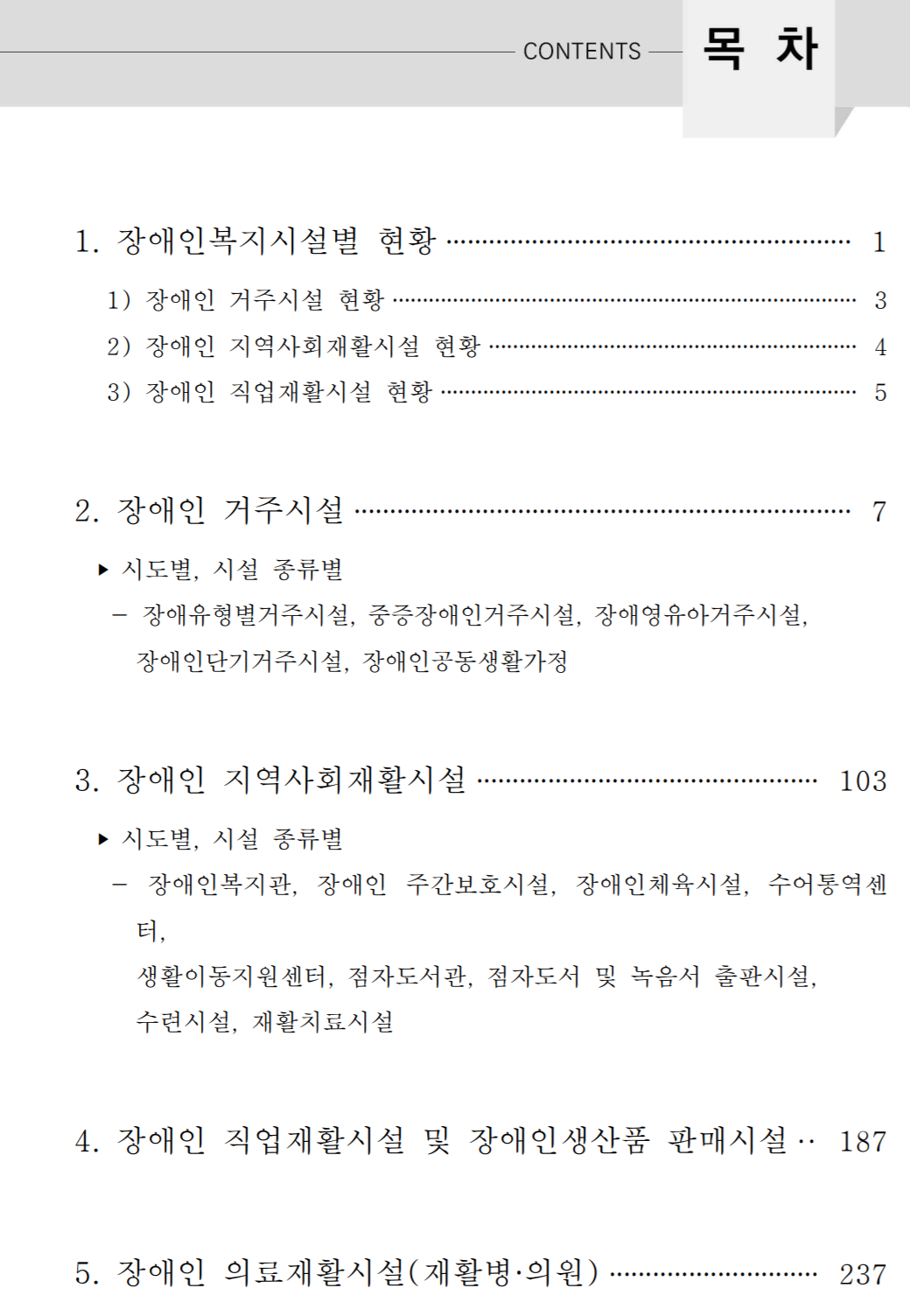 1. 장애인 복지시설별 현황