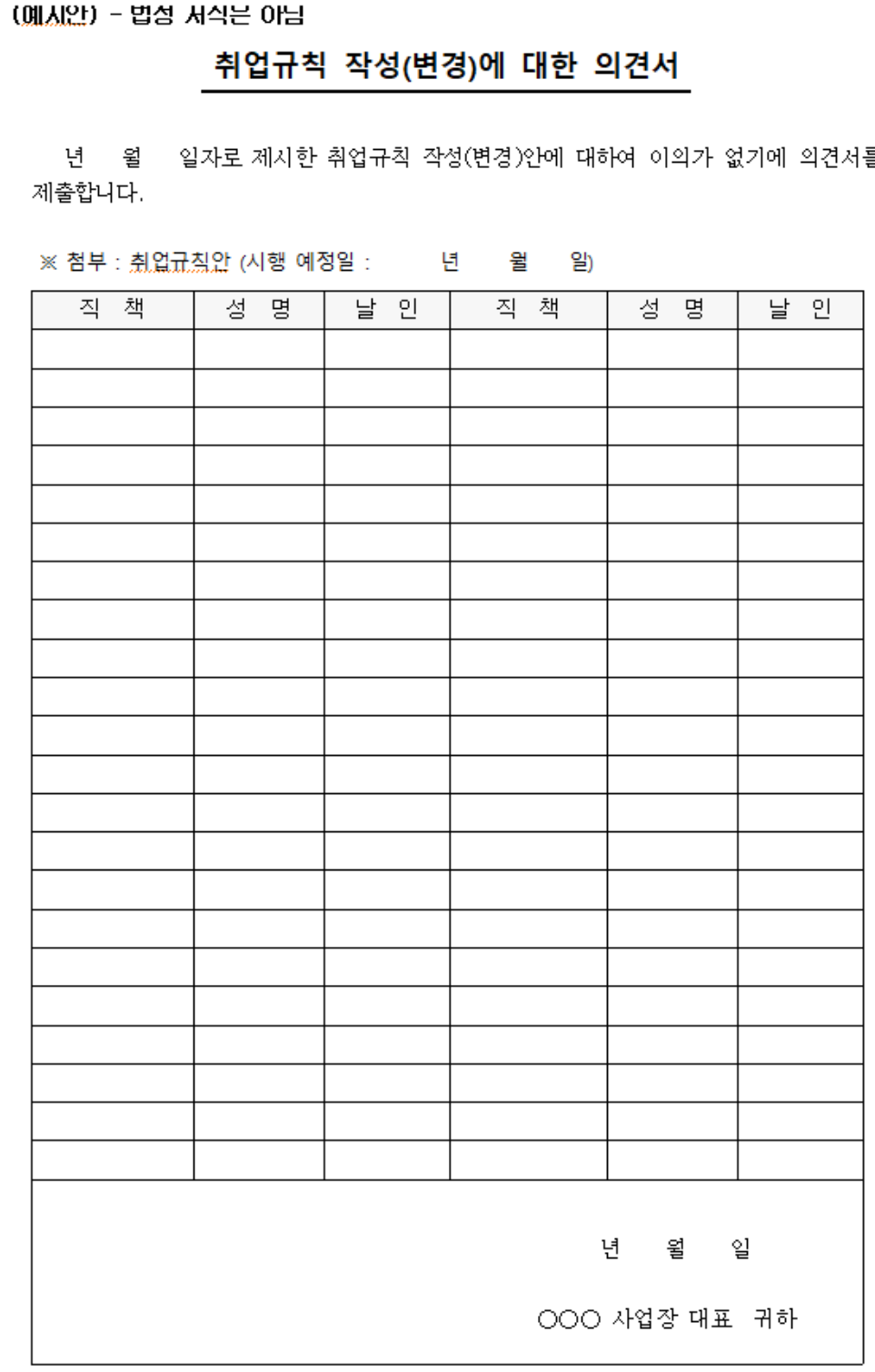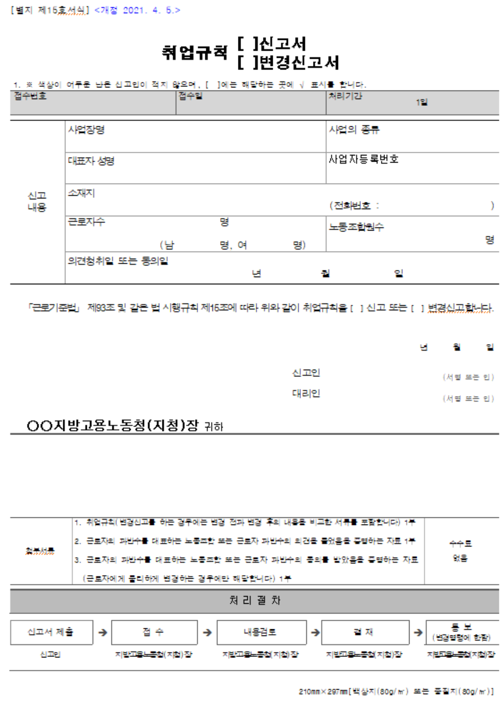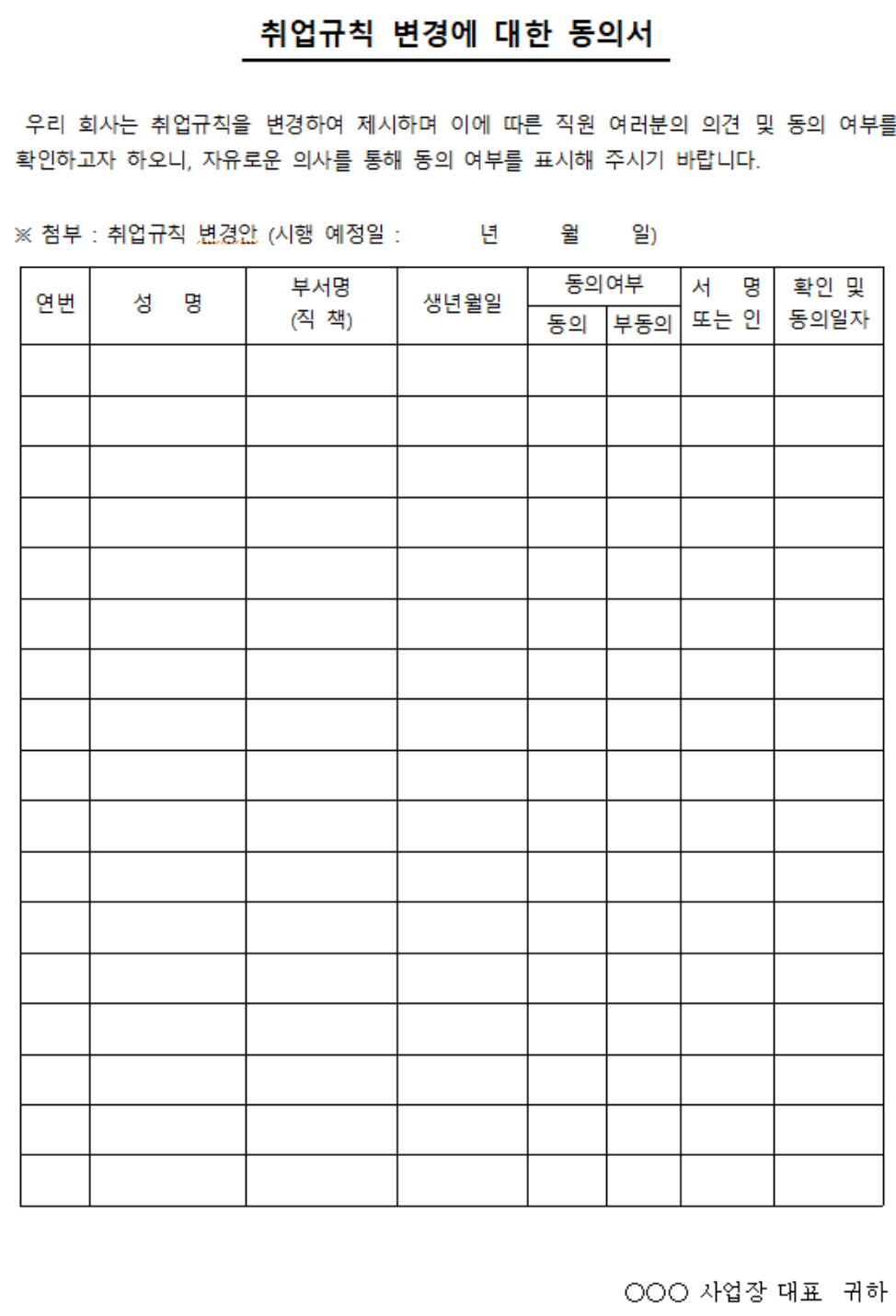 취업규칙 신고서(변경신고서) 및 의견서, 동의서 다운로드