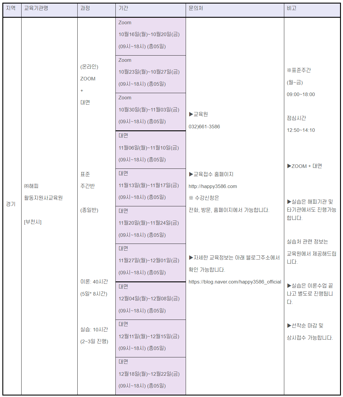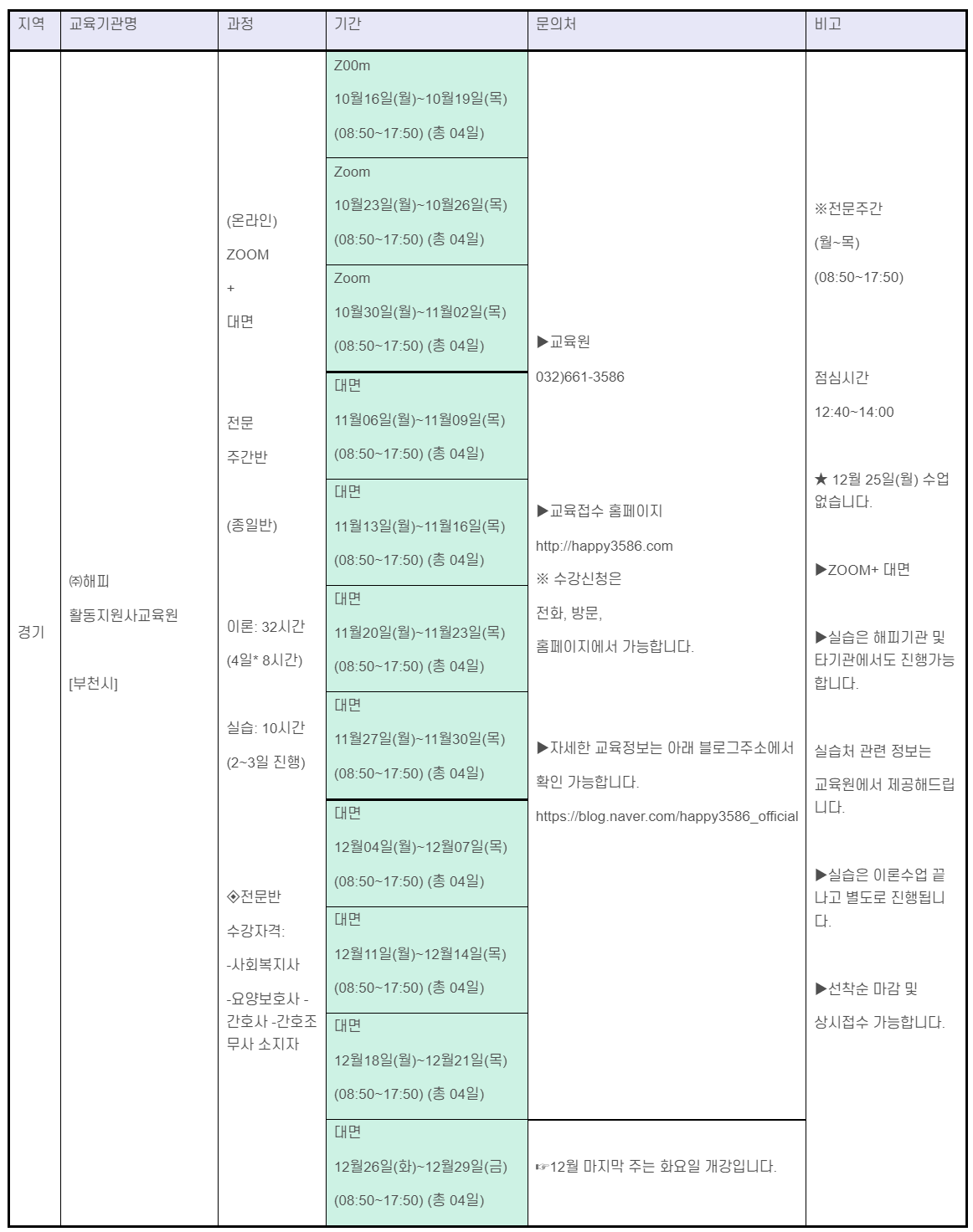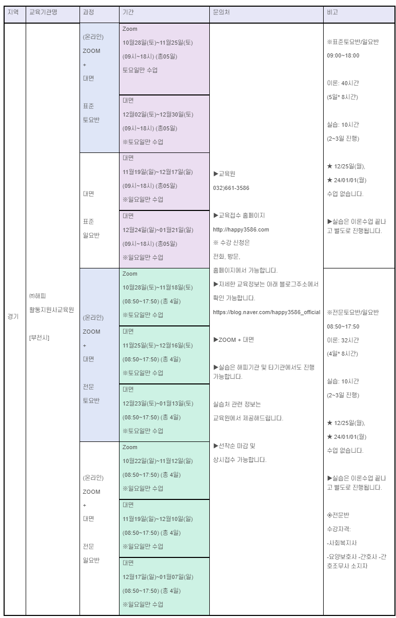 2023년 11월 경기도 장애인활동지원사 양성 교육 일정 모음