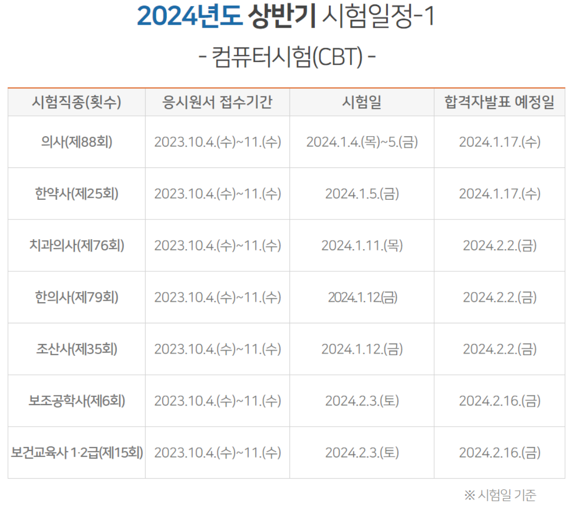 2024년 상반기 보건의료인 국가시험 자격증 시험 일정 모음
