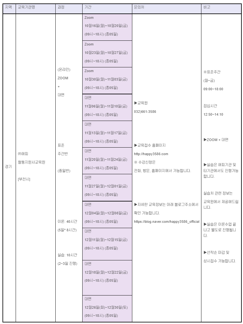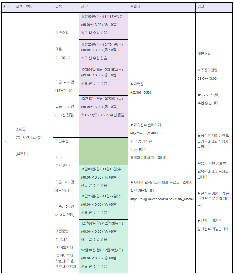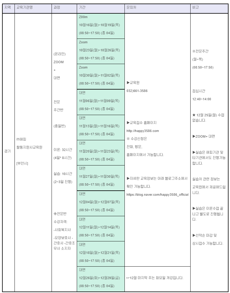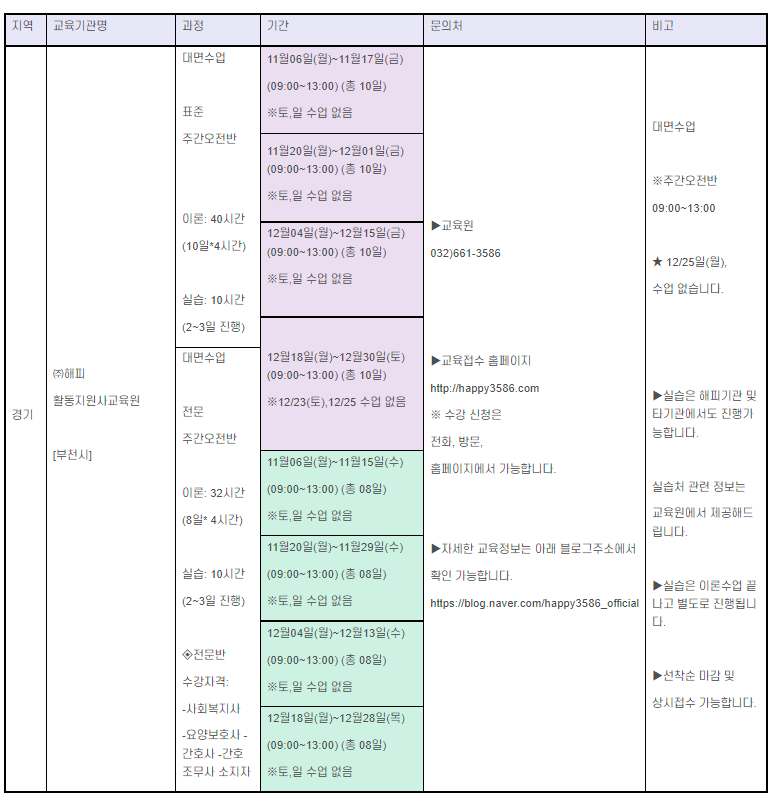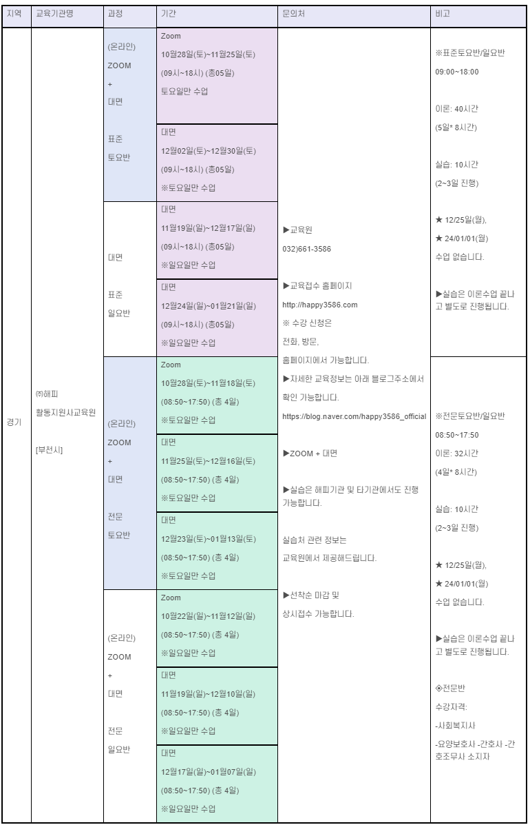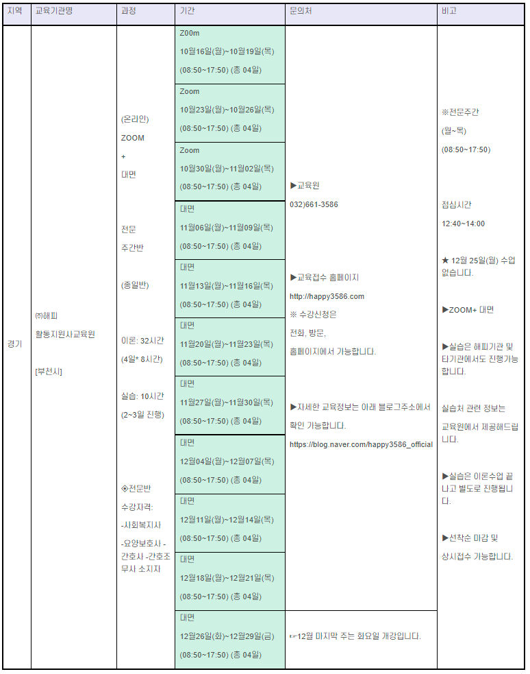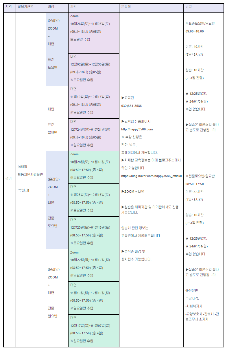 2023년 12월 경기도 장애인활동지원사 양성 교육 일정 모음