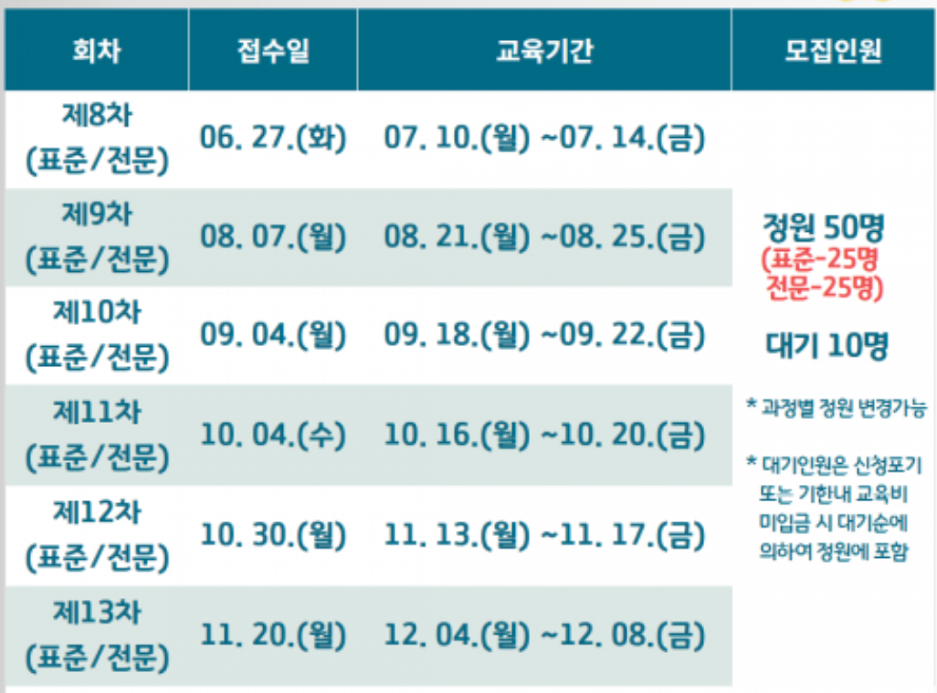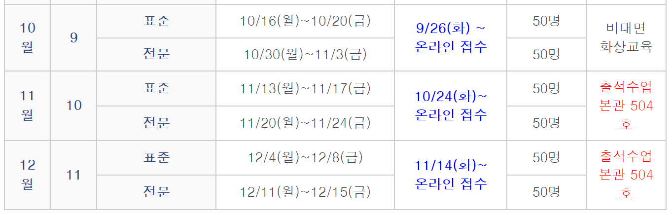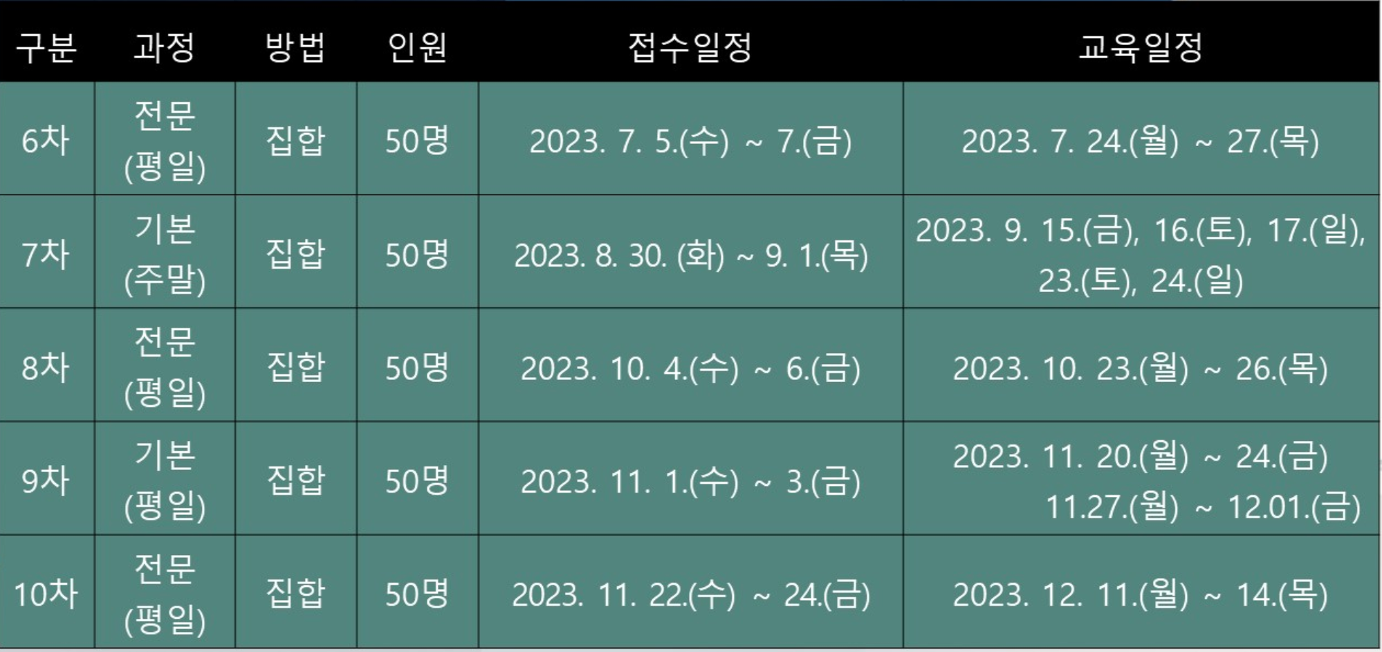 | 구분 | 월교육 | 교육기간 | 상태 |