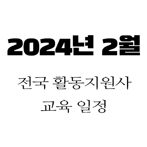 전국의 활동지원사 교육기관의 2024년 2월 일정 모음이다. 활동지원사는 실습을 포함해서 총 50시간을 교육을 받아야 한다.