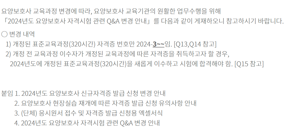 2024년 요양보호사 자격증 발급부터는 새로운 표준교육과정에 따라 자격증 번호가 변경된다.