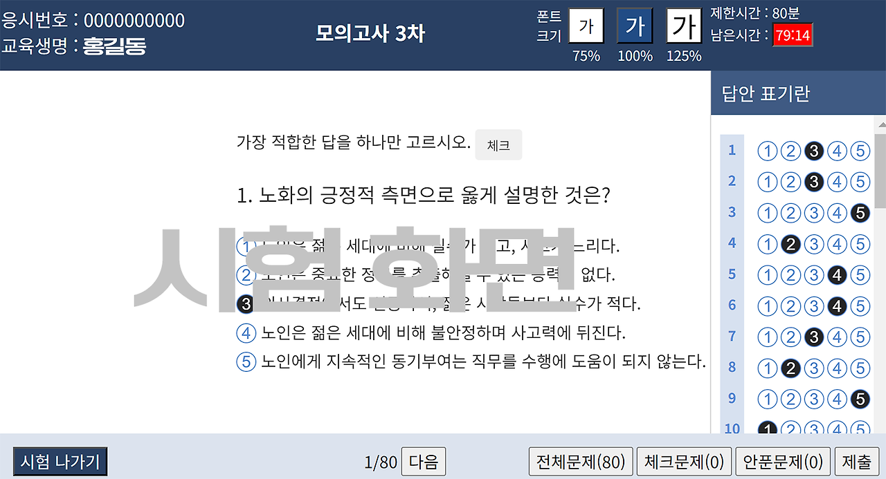 요양보호사교육원 CBT시험 제공 ( 모의고사, 형성평가 총 500문항 제공 )
