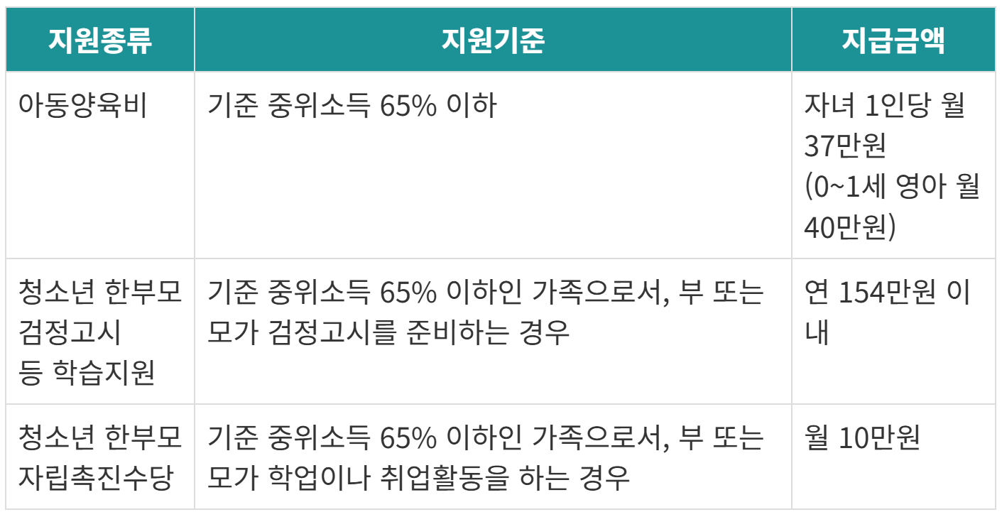 2025년 청소년 한부모가족 복지지원 기준