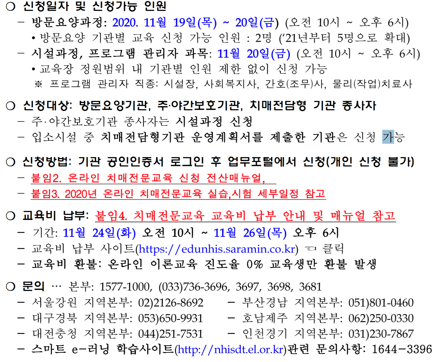 2020년 온라인 치매전문 교육 신청하세요. ( 첨부파일 다운로드 )