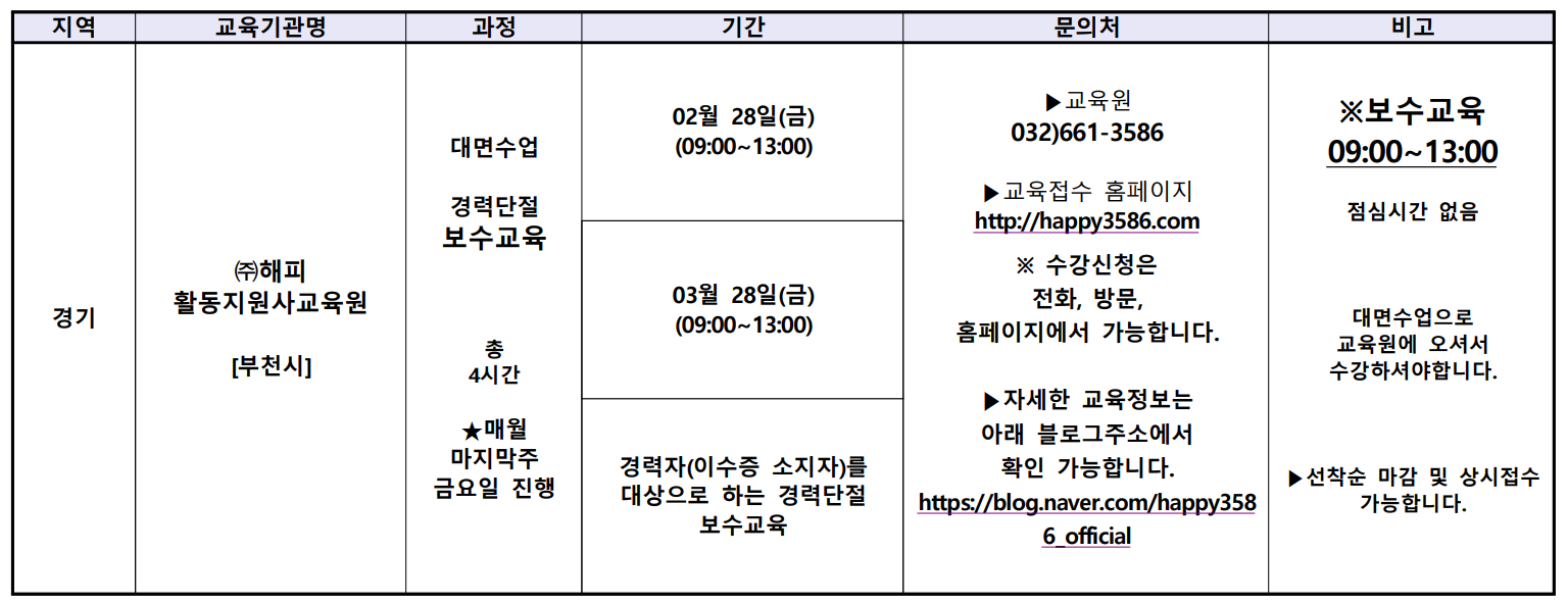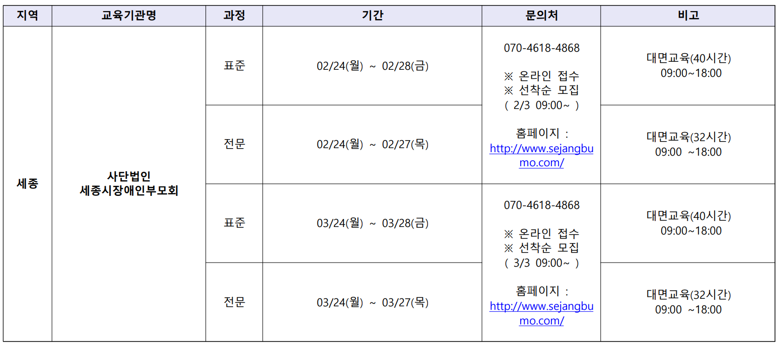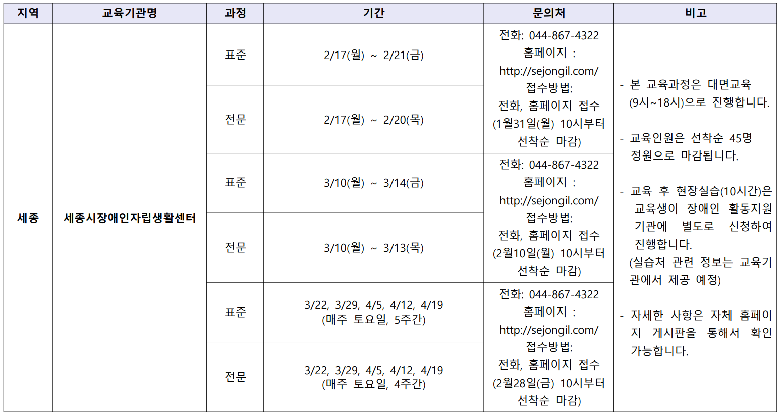 2025년 2월 전국 장애인활동지원사 양성 교육 일정 모음