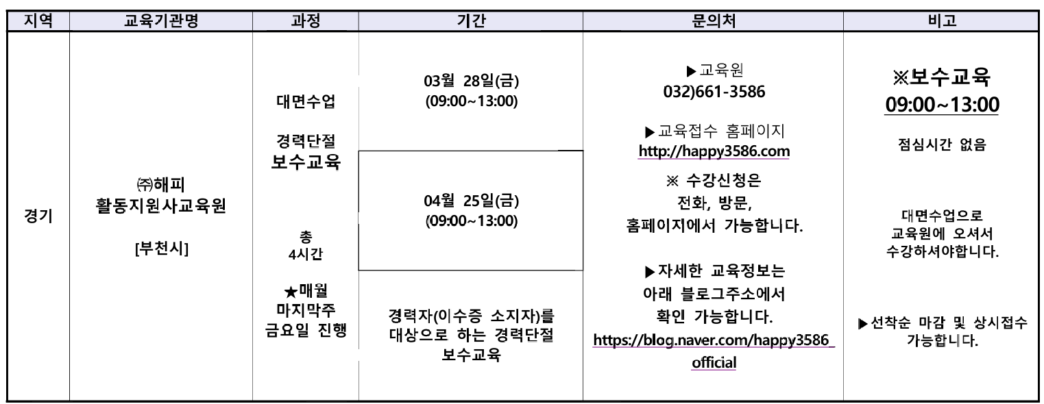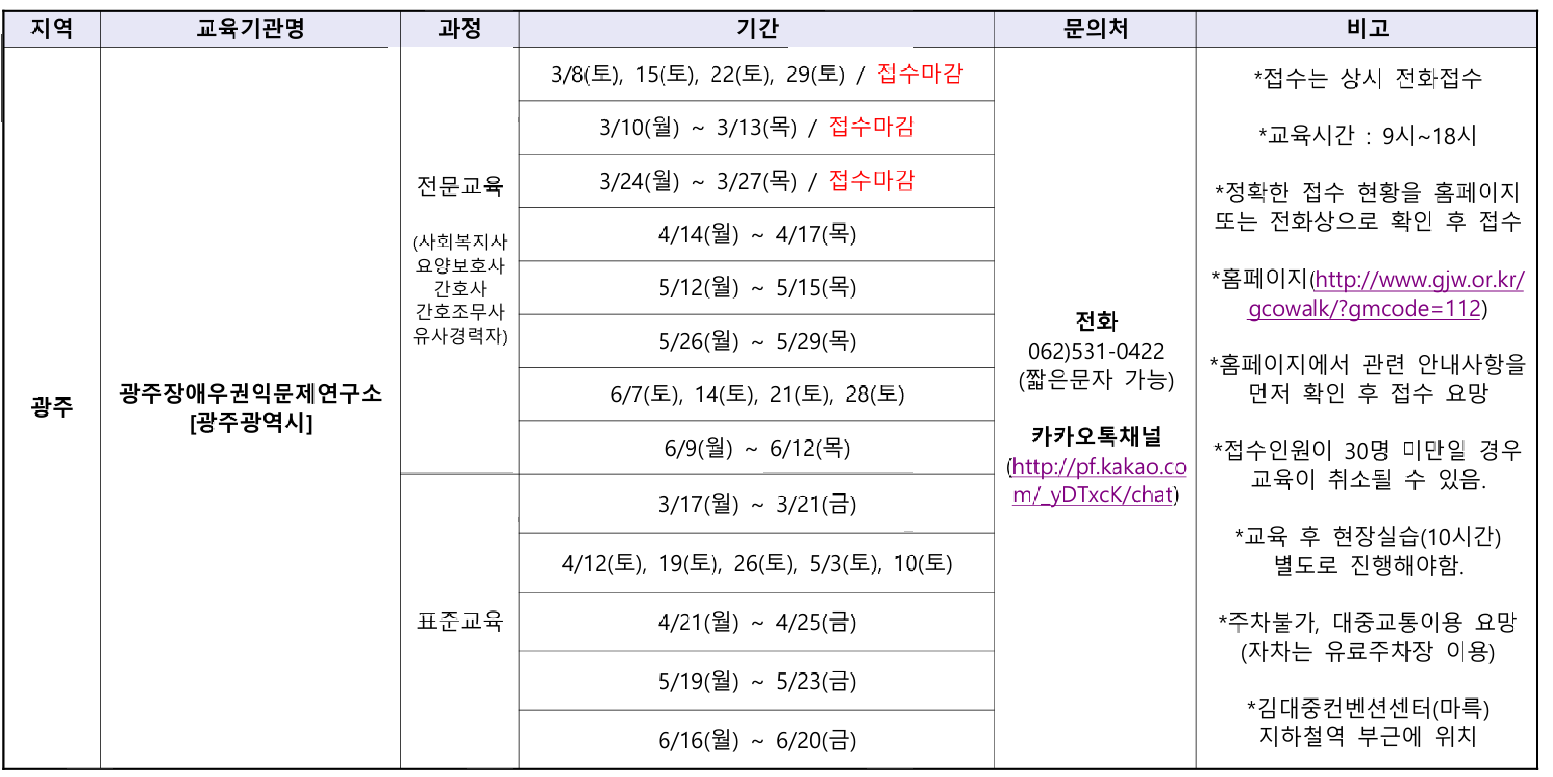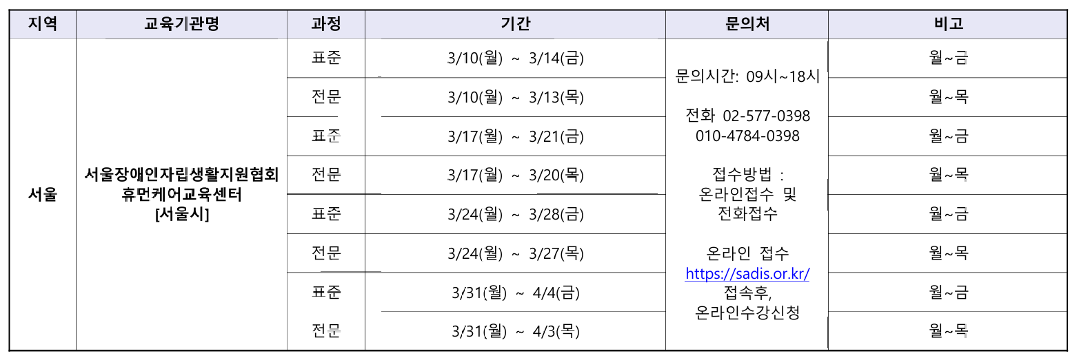 2025년 3월 전국 장애인활동지원사 양성 교육 일정 모음