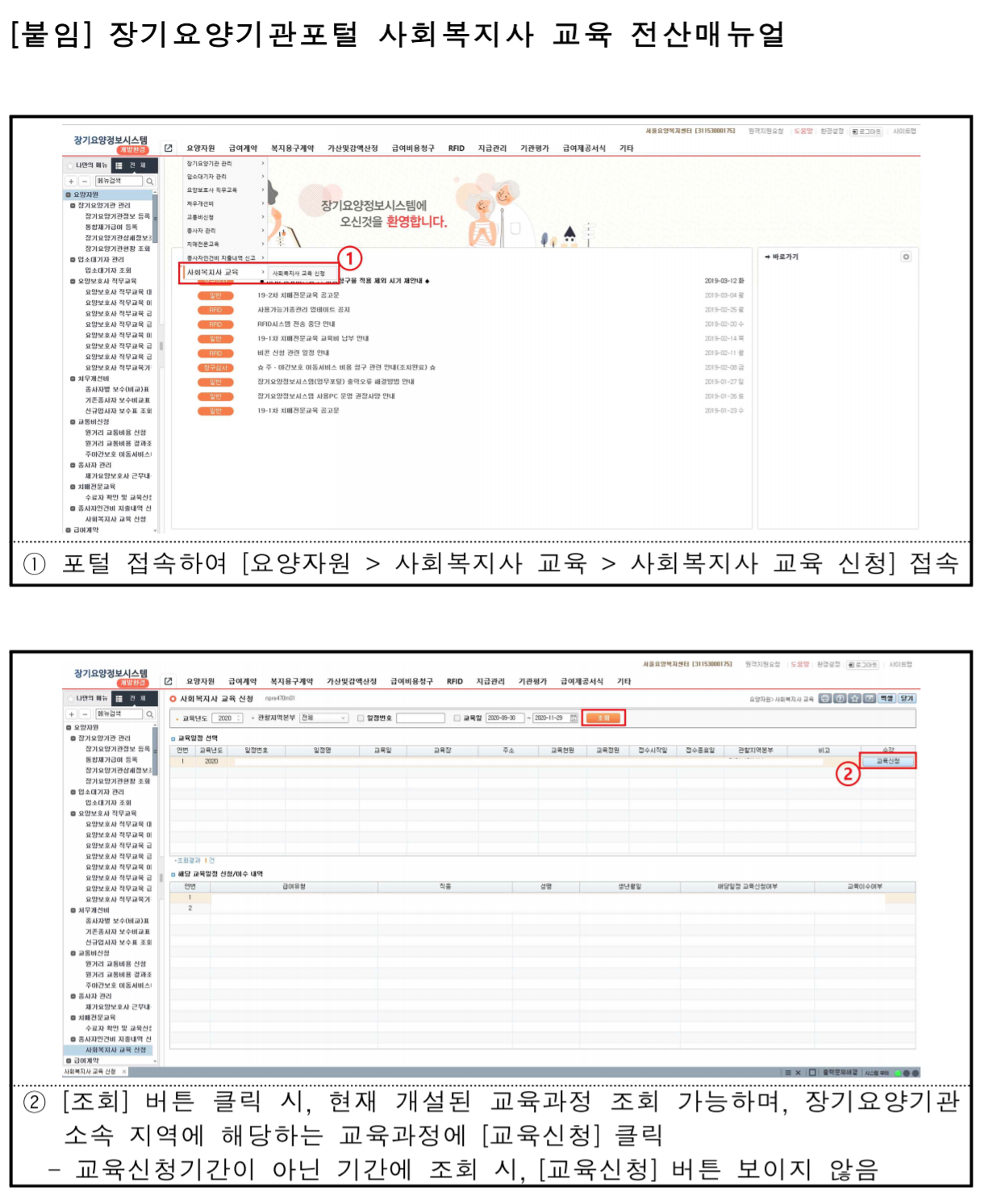 대상자는 시설장, 사회복지사, 간호(조무)사, 팀장급 요양보호사 등