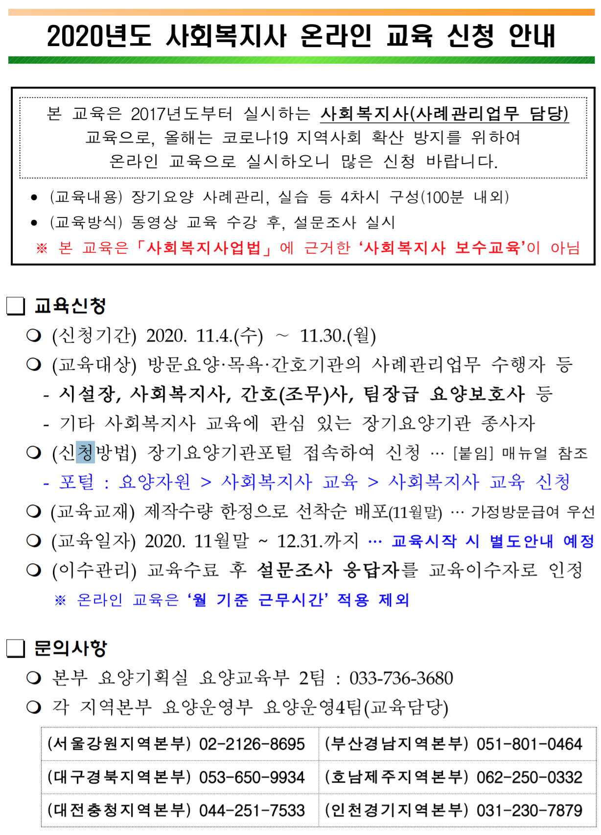 사회복지사 온라인 교육 신청 및 일정표 ( 사례관리 담당 )