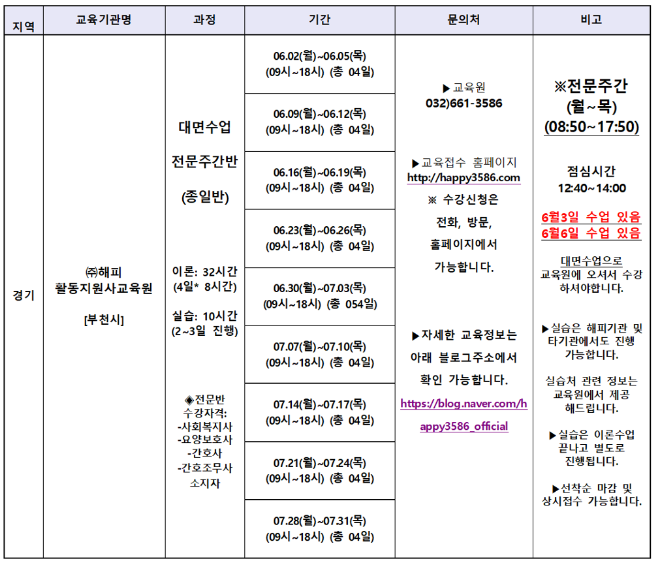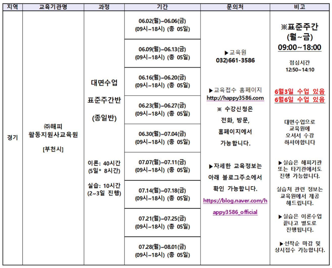 2025년 7월 경기 장애인활동지원사 양성 교육 일정 모음