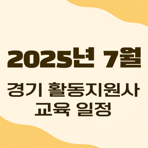경기도에 위치한 장애인 활동지원사 양성 학원의 2025년 7월 교육 일정 모음이다. 교육 일정은 해당 교육기관 홈페이지에서 발취했다. 교육 일정은 기관 사정에 따라 변경될 수 있다.
