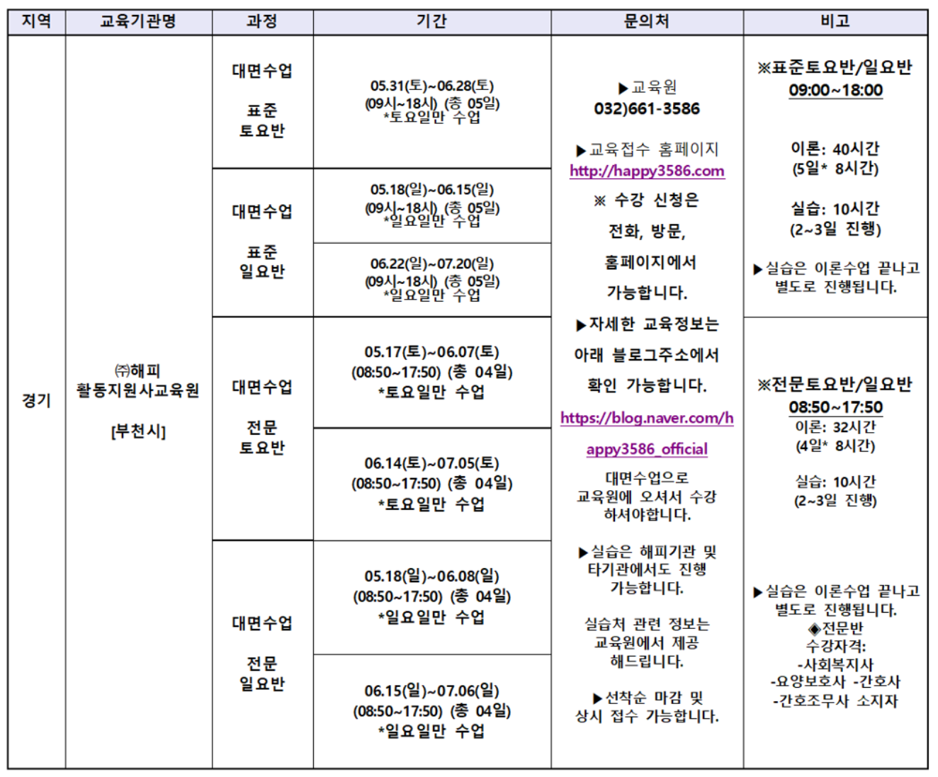 자격증 정보/활동지원사 교육일정