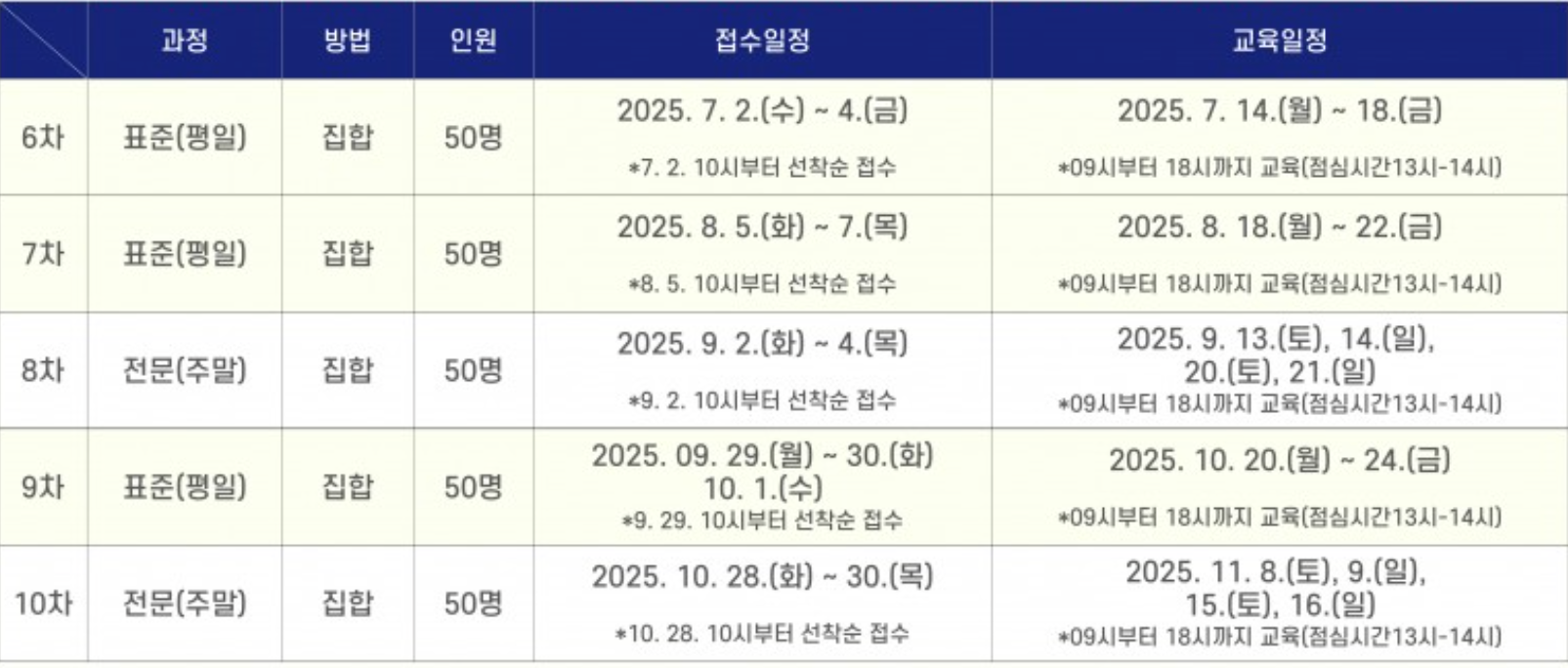 | 회차 | 일반 교육 | 유사경력자 교육 |