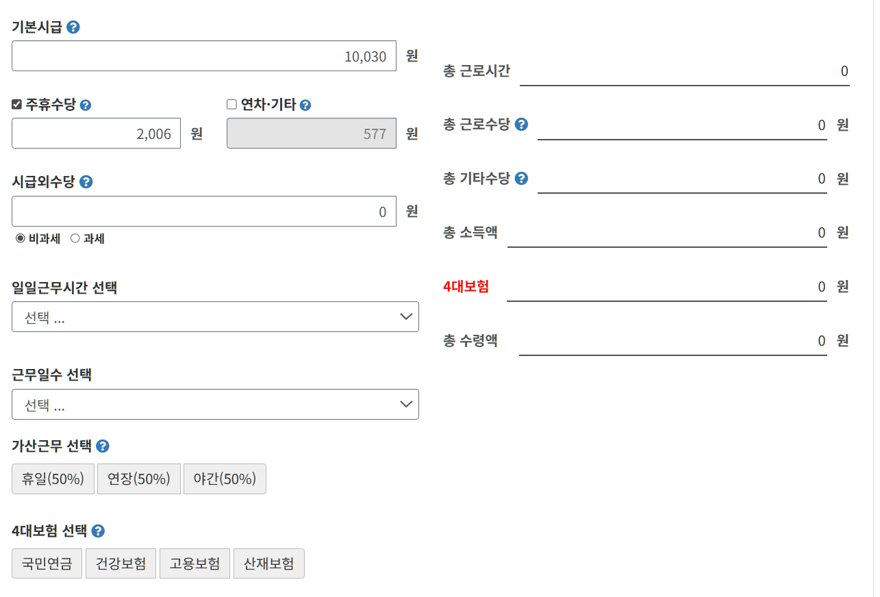| 구분 | 시급 | 주휴수당 | 연차수당 |