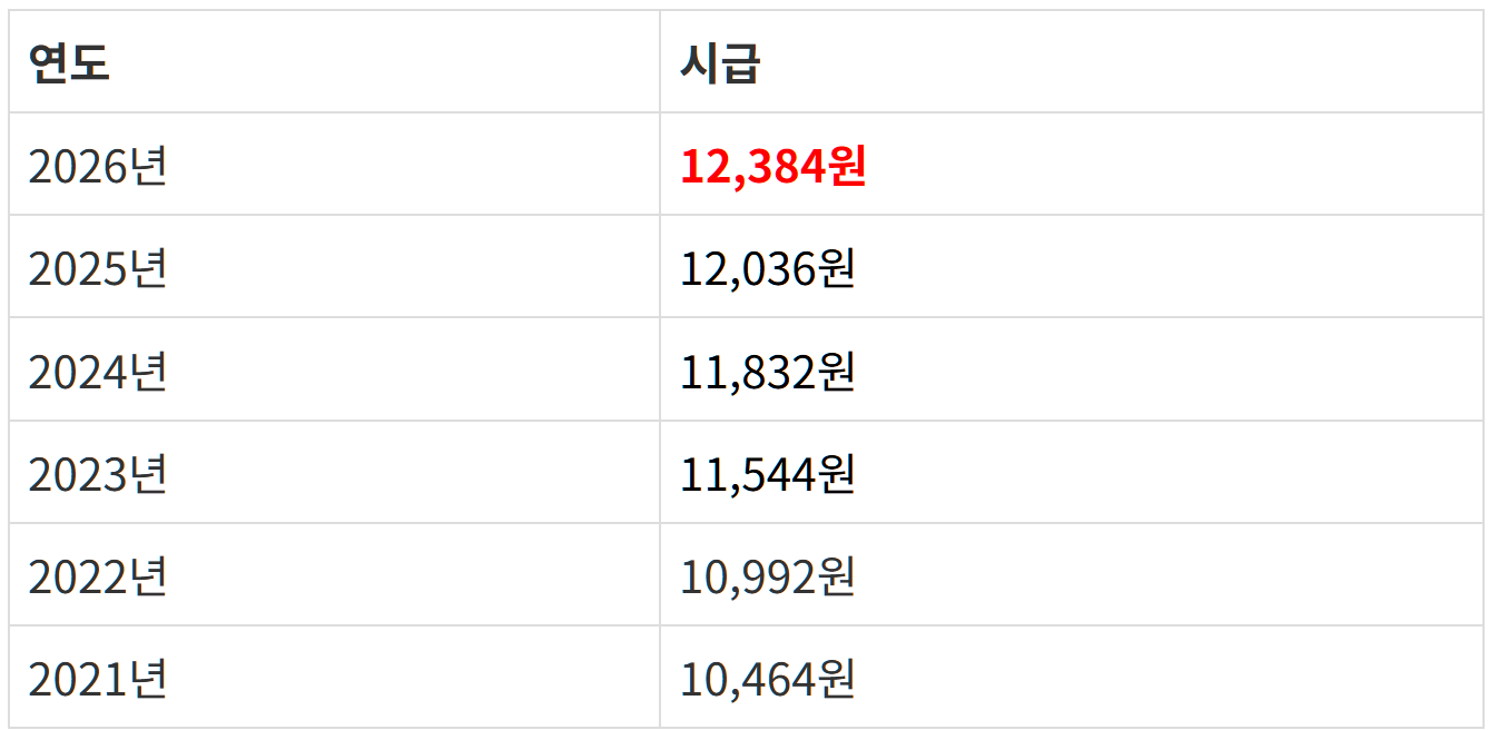 | 합계 | - | 12,384원 (시급+주휴) | 12,978원 (시급+주휴+연차) |