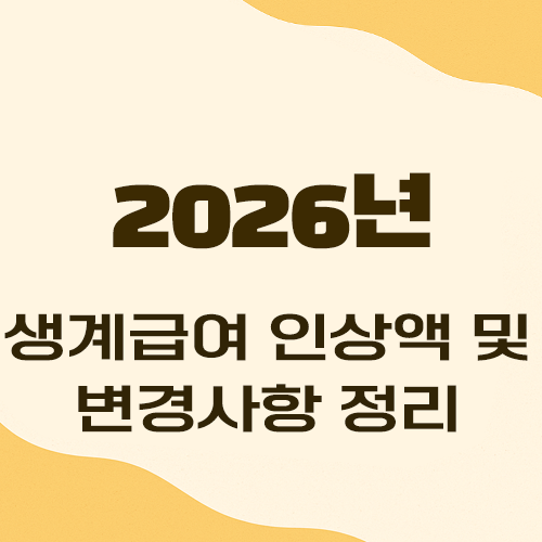 지금까지 2026년 생계급여의 선정기준액, 인상금액, 변경사항을 알아보았다.