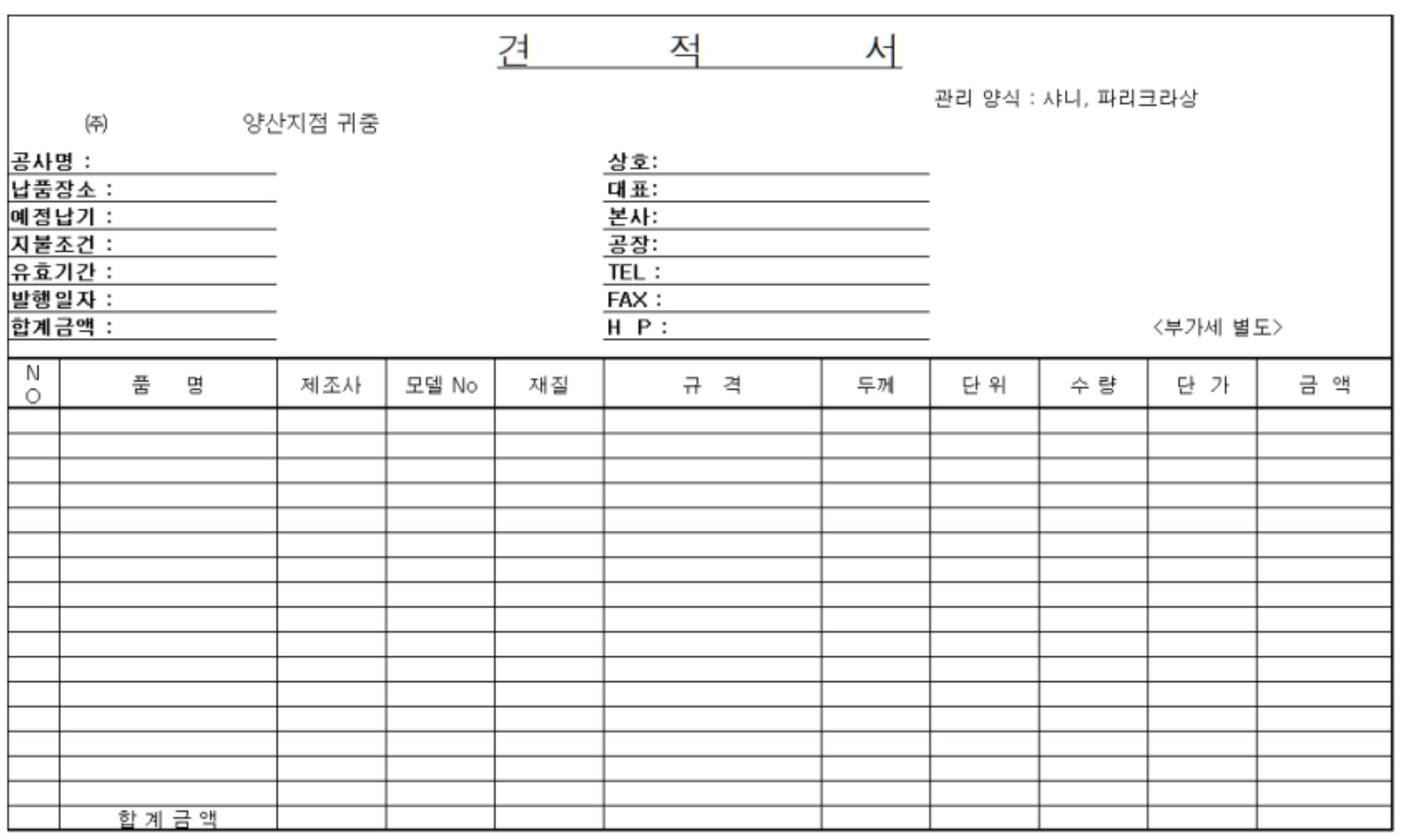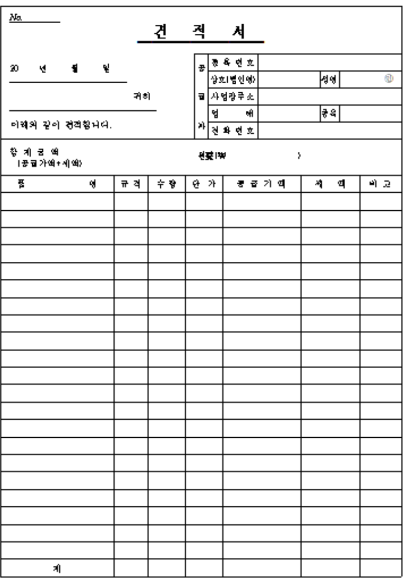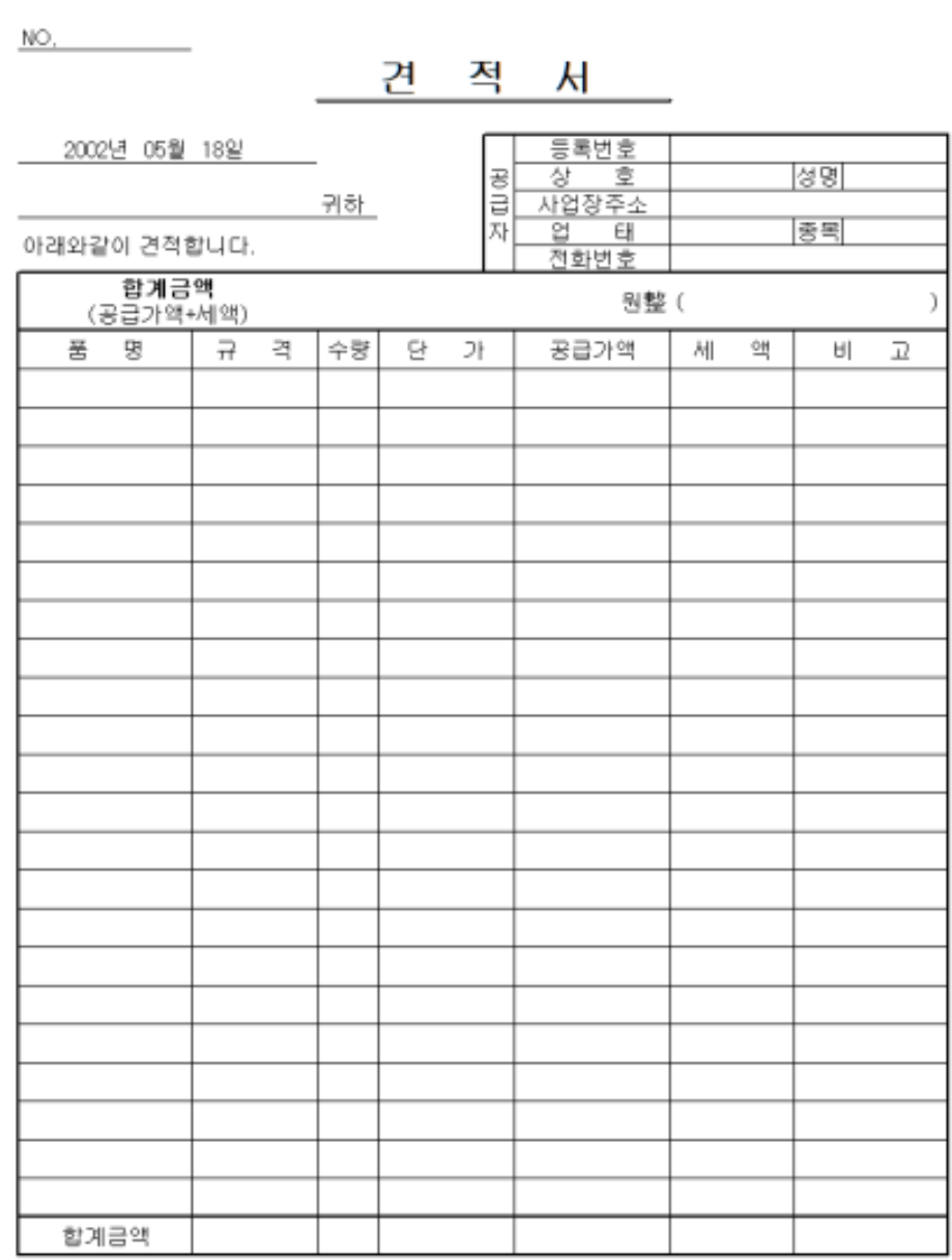 이번 글에서는 누구나 쉽게 활용할 수 있는 기본형 견적서를 무료로 다운로드할 수 있도록 사진과 함께 첨부했다.
