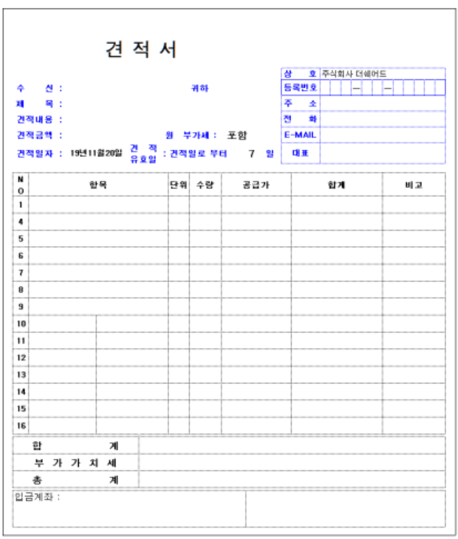 사업이나 개인 거래에서 가장 먼저 주고받는 문서 중 하나가 바로 견적서이다. 온라인 시대인 지금도 많이 이용하는 서식 중 하나이다.