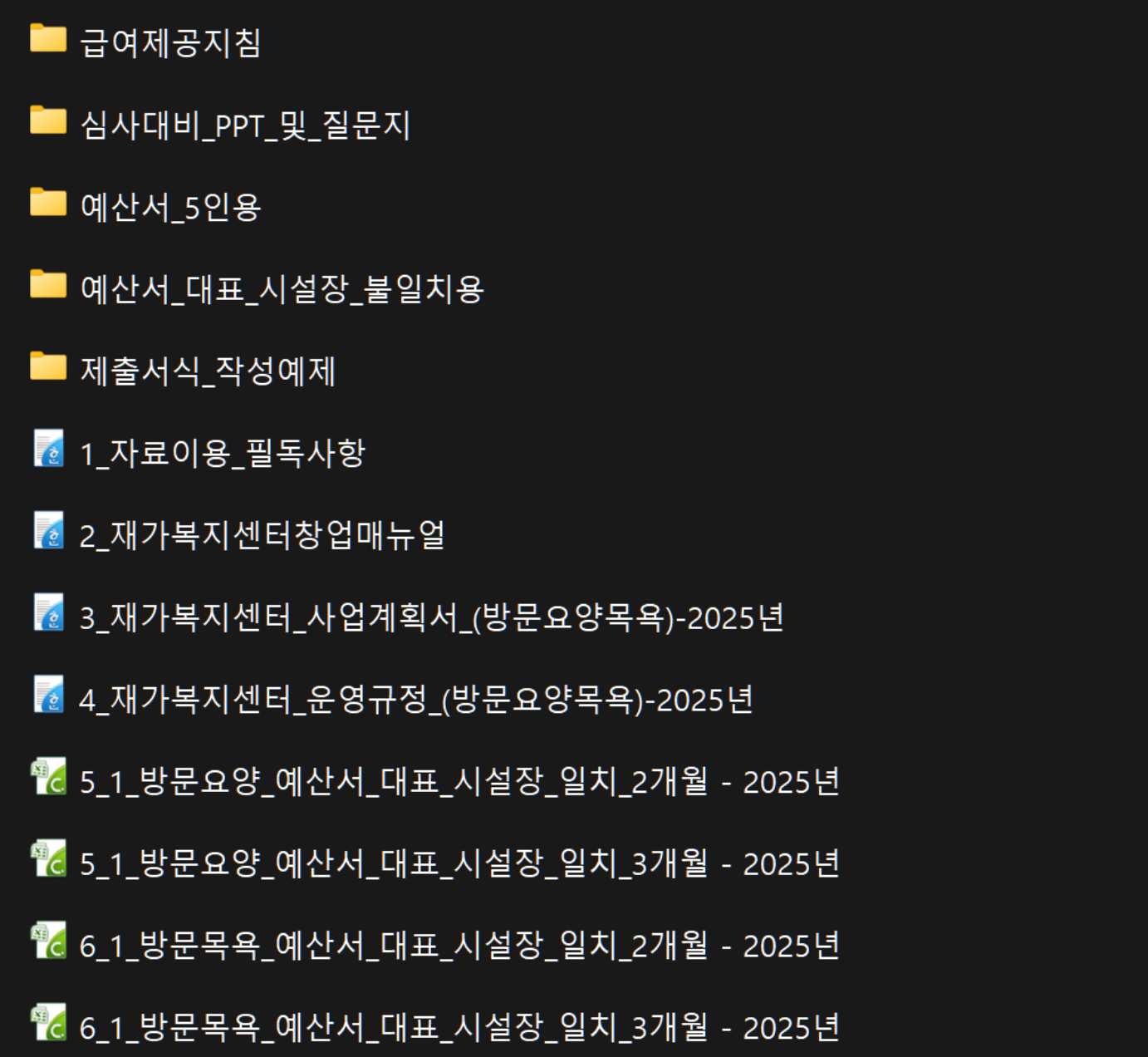 재가복지센터 창업 2025년 9월 예산서 및 사업계획서 제출 샘플