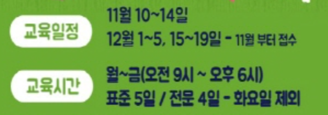 | 신규 평일반 | 17차 | 40 | 2025년 12월 15(월)~ 12월 19(금) (5일간 오전 9시 ~ 오후 6시) |
