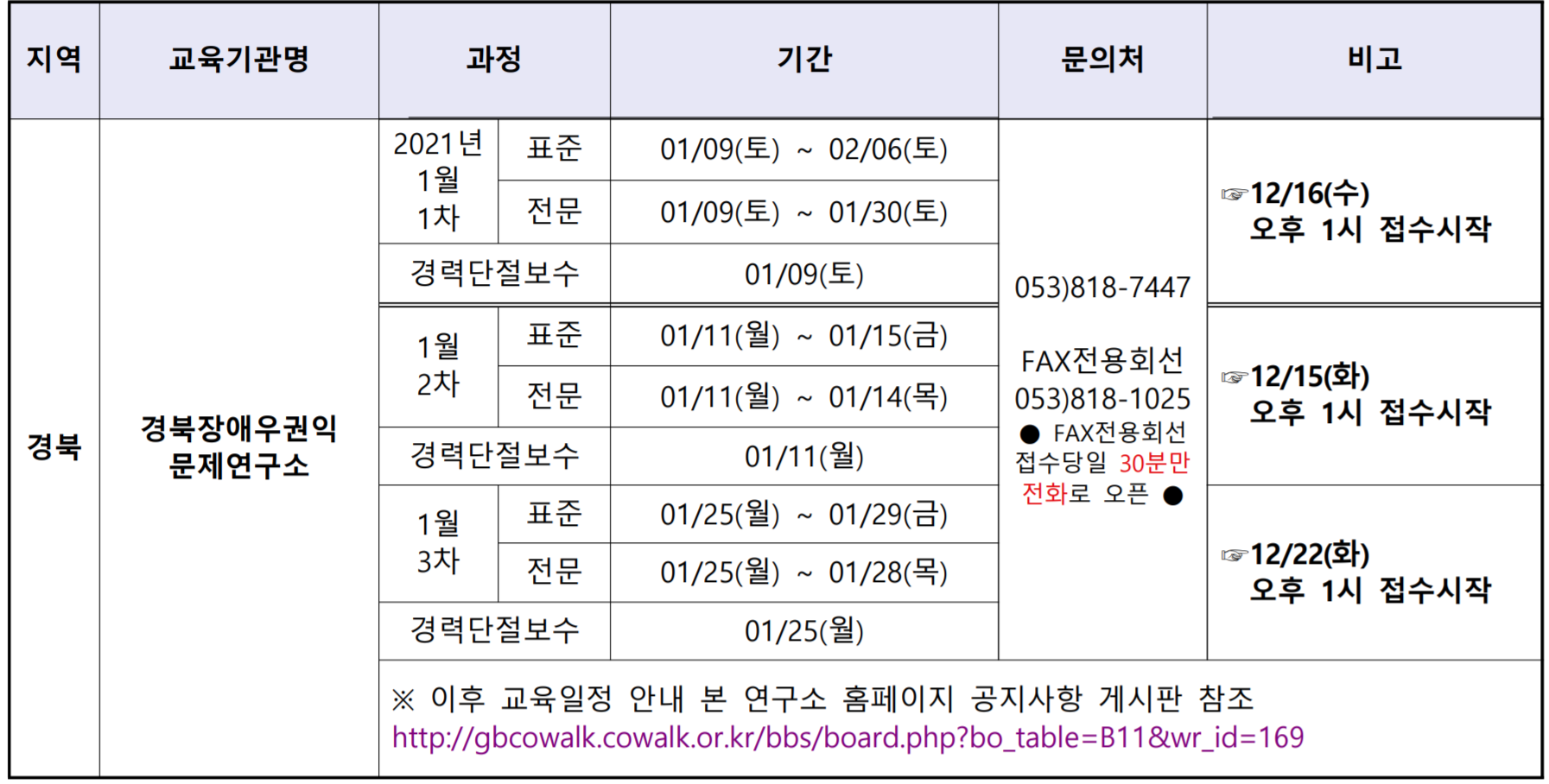 경북장애우권익문제연구소 교육일정이다.
