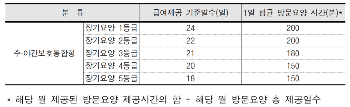 주야간보호 월 8회 및 방문요양 월 1회 이상 필수 제공