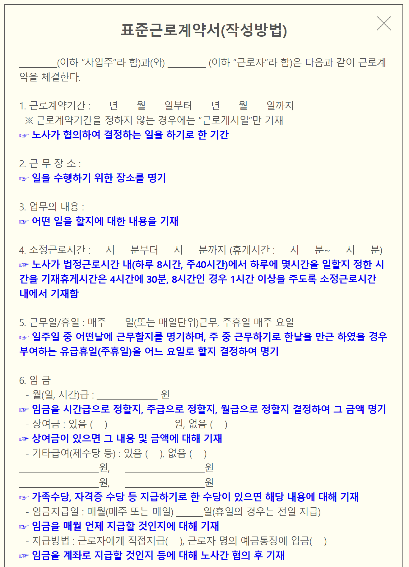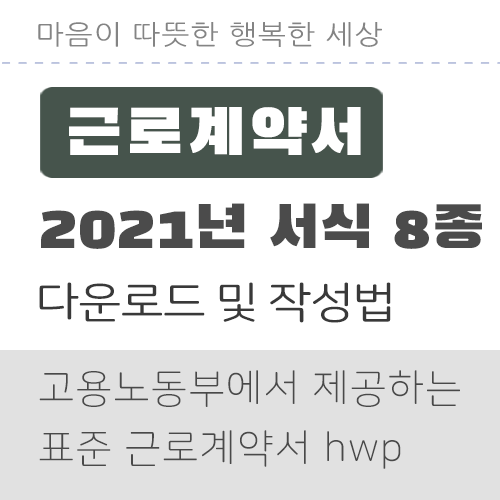 2021년 표준 근로계약서 서식 8종 다운로드 및 작성법, 외국인 양식 (고용노동부)