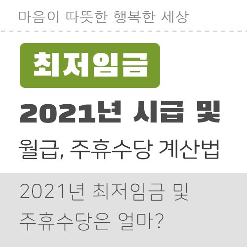 2021년 주휴 수당 계산법과 최저 시급 및 최저 월급 임금