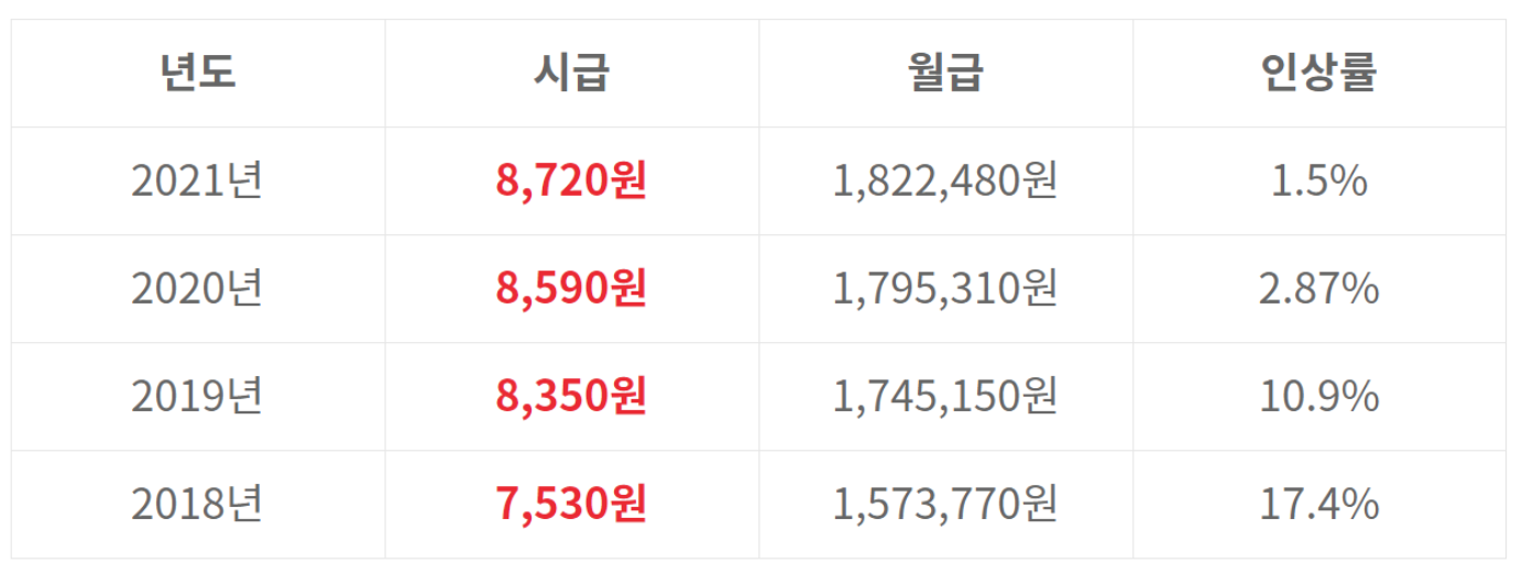 2021년 최저 시급은 8,720원이다.