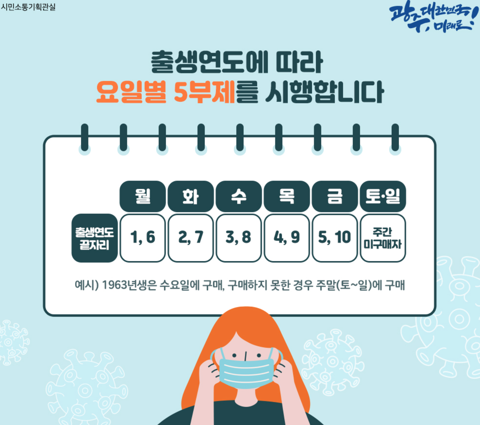 공적 마스크 구입 5부제를 시행하기로 했습니다.