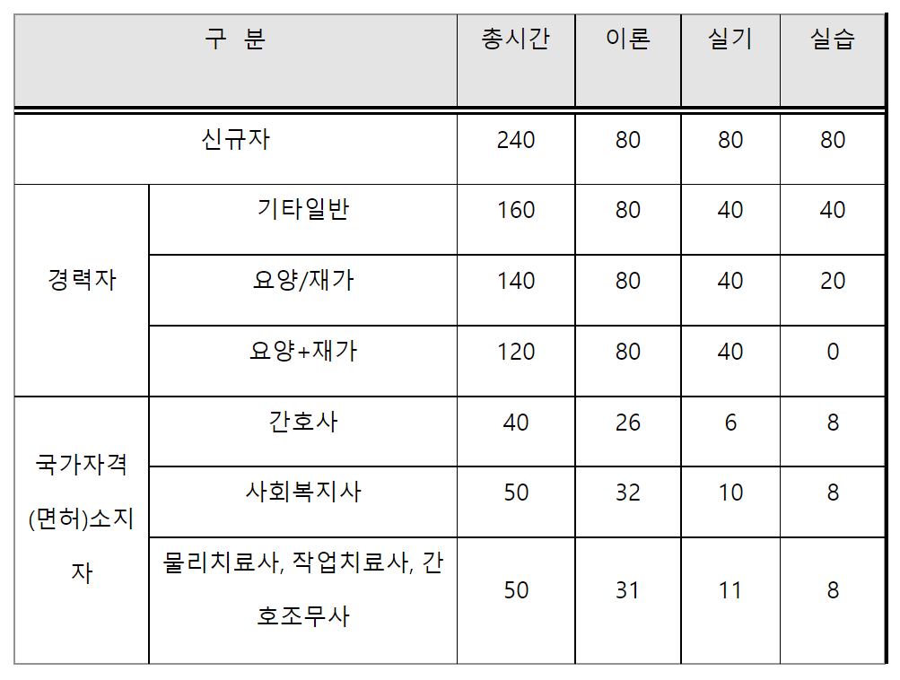 위와 같이 국가 자격증 소지자는 교육 이수 시간 감면 혜택이 있습니다.