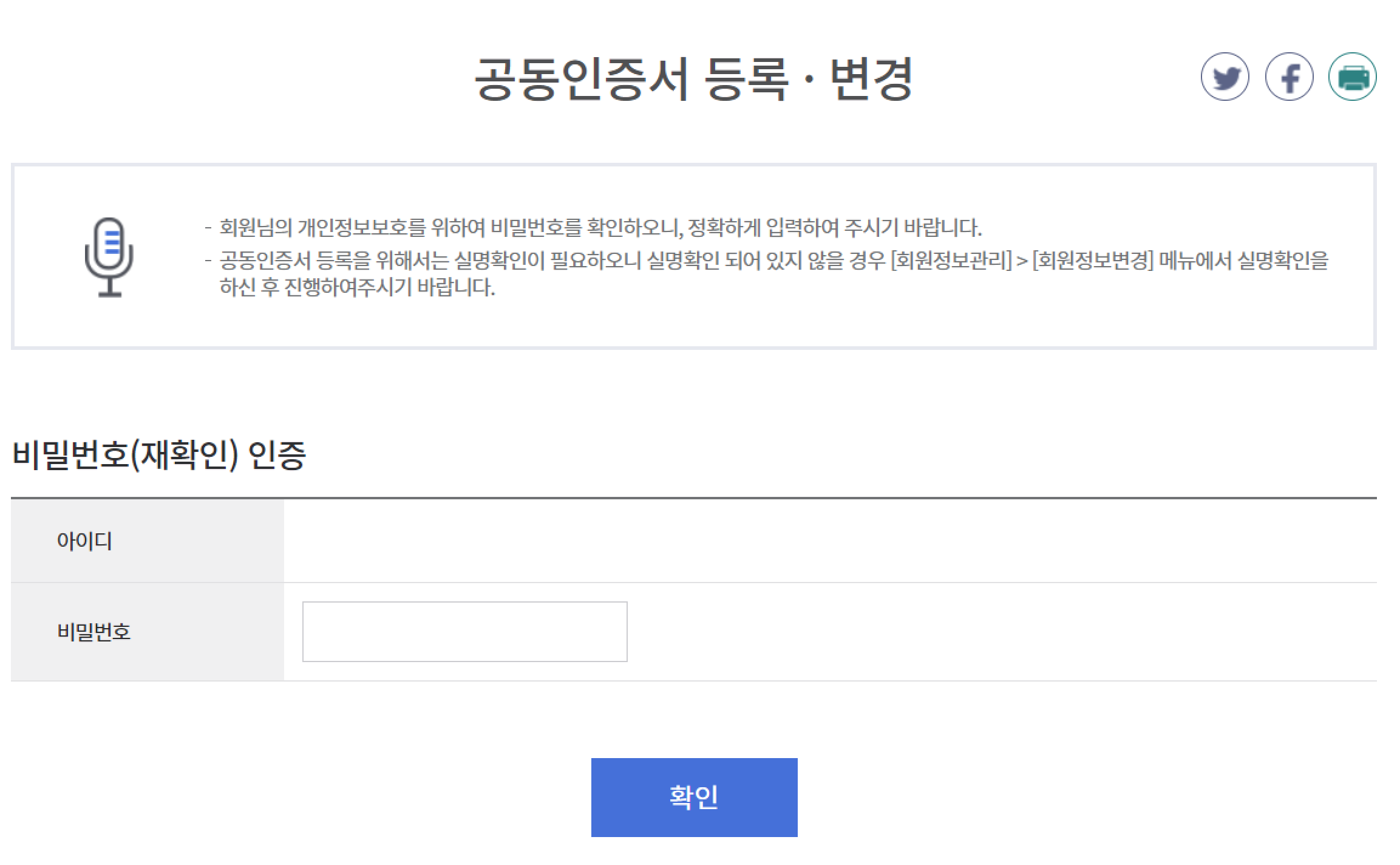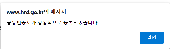 공인인증서 등록 버튼을 누르면 등록 절차가 진행된다.