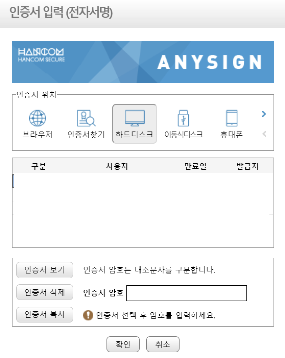 전자상거래에서 공인인증서를 사용하듯 공인인증서를 선택해서 등록하면 된다.