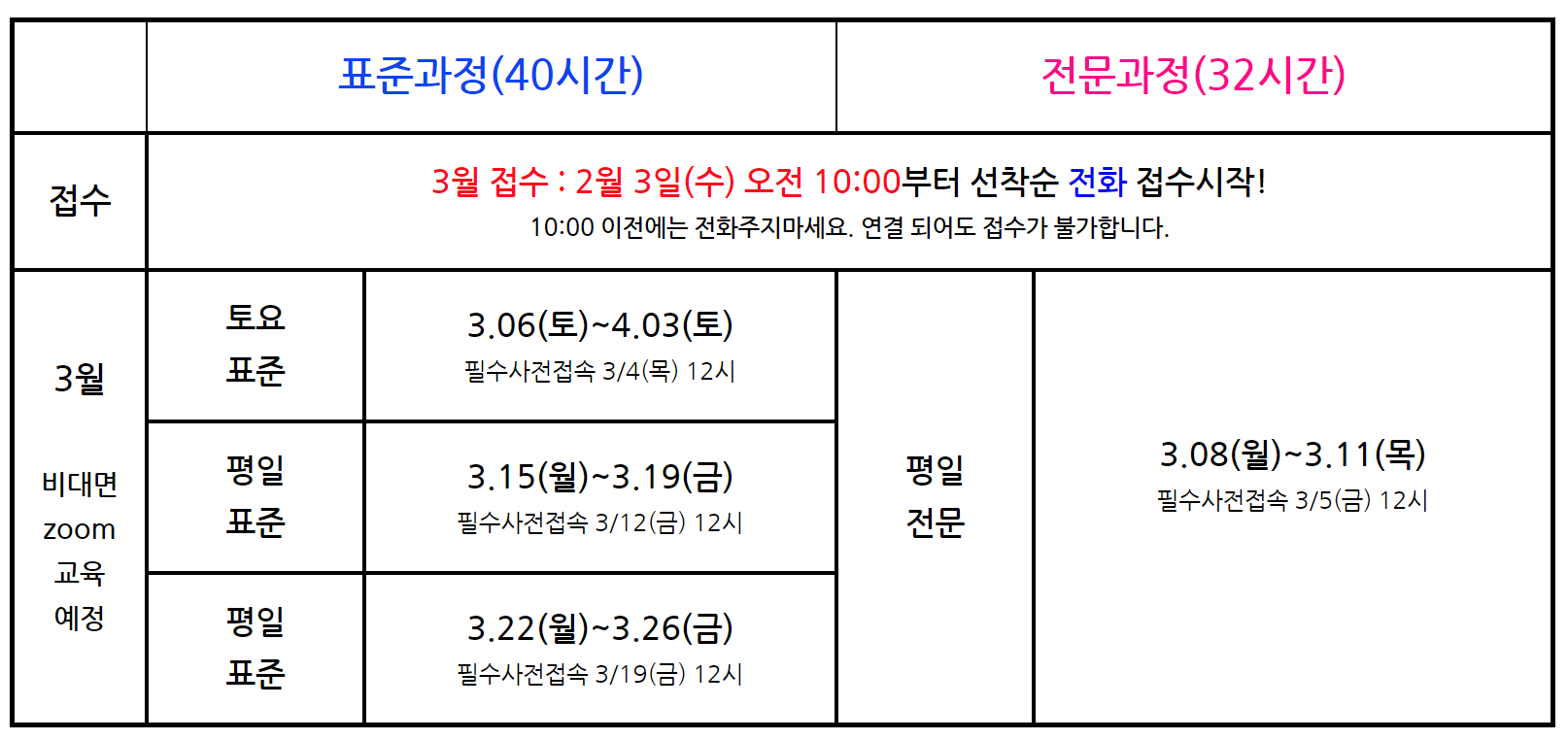 연락처 정보가 있으니 교육 일정 등을 직접 문의해 봐야 할 것 같다.