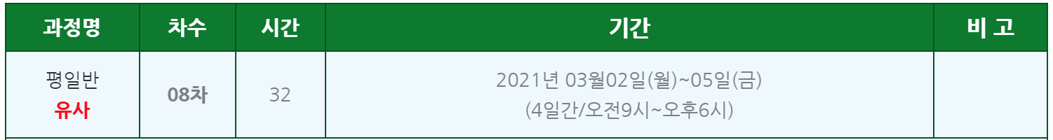 3월 8차까지 진행되는 것으로 보아서 매월 교육 일정이 있는 것 같다. 홈페이지 방문해서 접수 일정을 확인해 보자.