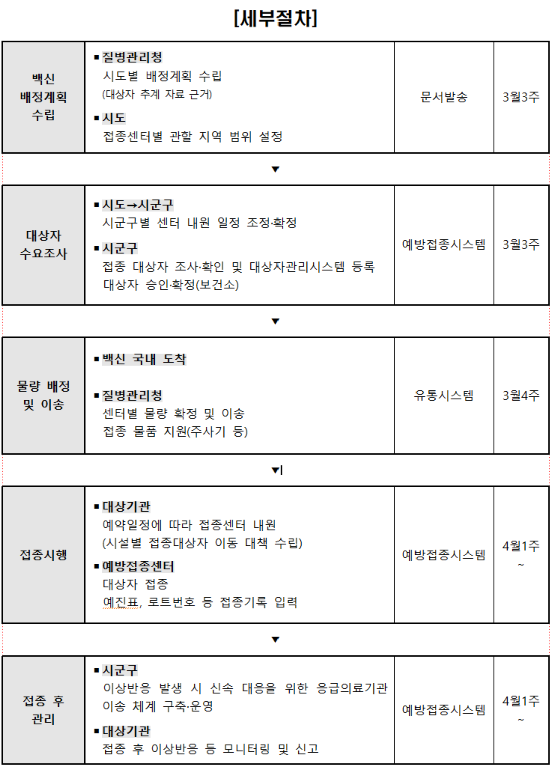 ㅇ (일정) 1차 4월1주부터, 2차 4월4주부터 접종