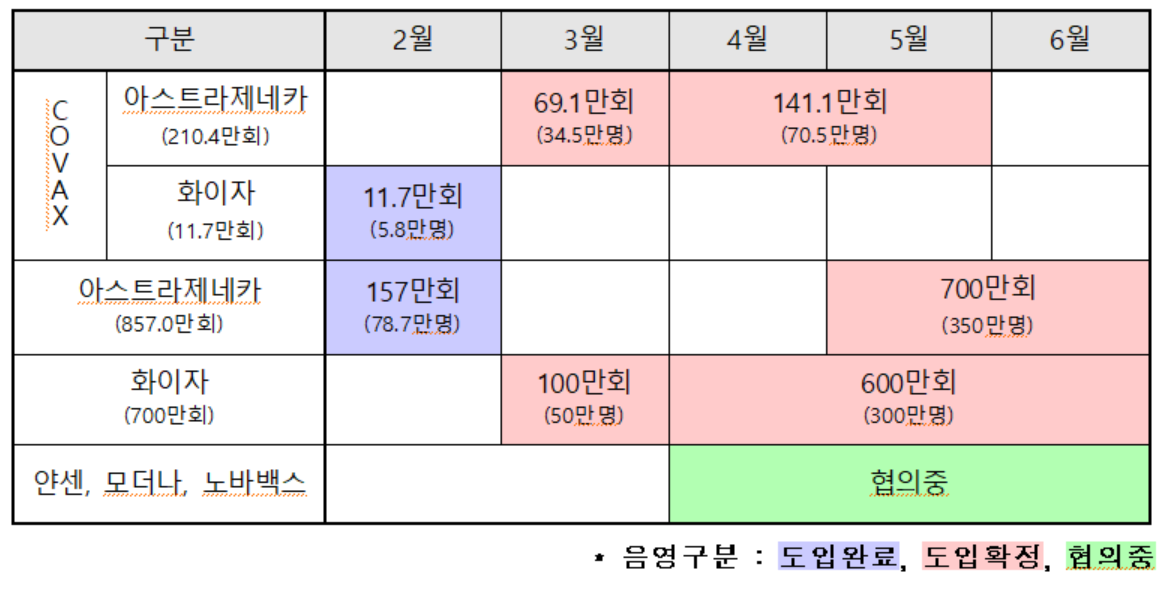 * 3월 15일 기준 도입일정, 국가검정 후 접종가능