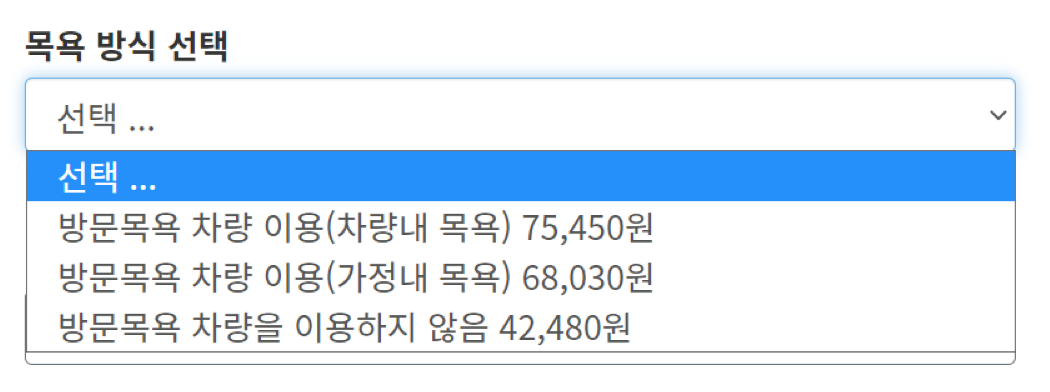 다음으로 목욕 방식을 선택해야 한다. 3 가지의 목욕 방식이 있고 방식에 따라 비용이 다르다.